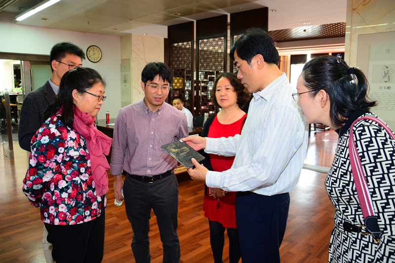 签约揭牌仪式结束后,围绕基地深化共建,双方人员充分交流交换了意见,张蕊副馆长对加强文献利用等方面的沟通与合作提出建议,华世佳书记对双方协议内容的落实、细化提出建议,希望通过优化志愿者服务方式,组建一支更为专业的服务团队。孙晓媛副书记围绕大学生国学文化推广活动的合作提出建议,乔红霞主任详细介绍了志愿者的工作,对优化文化志愿服务内容提出设想。随后我方人员在张蕊副馆长等人的引导下,还参观走访了海南省图书馆地方文献室,古籍部阅览室和古籍修复工作室,实地了解了人文传播学院志愿者实习实践的情况。