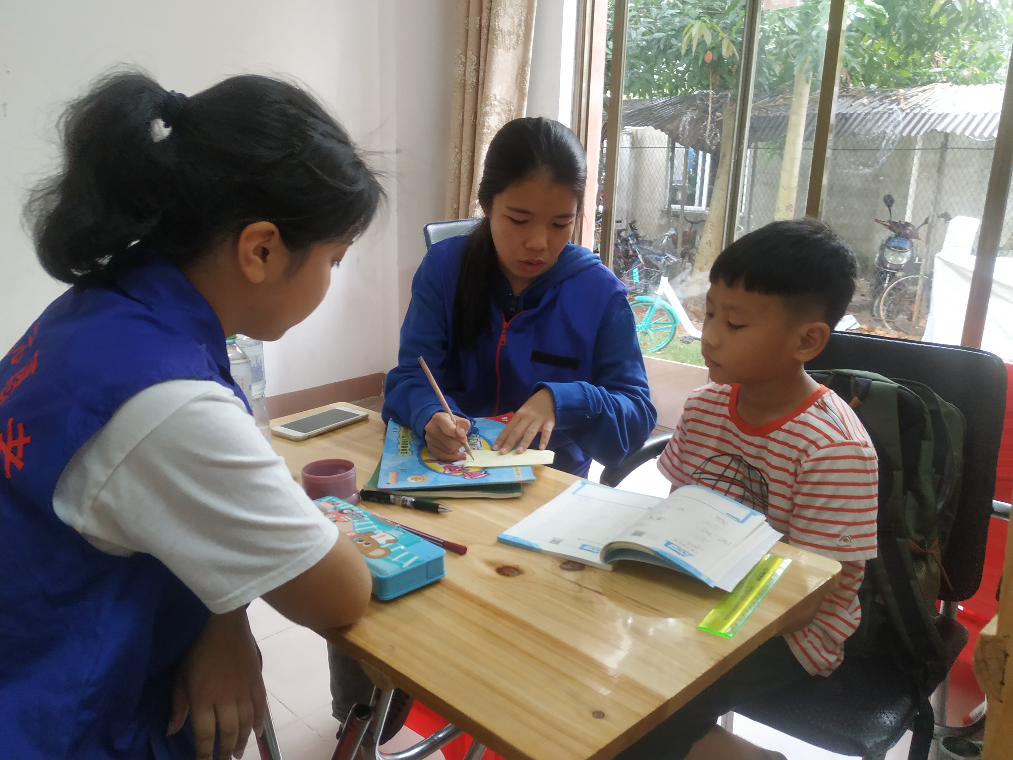 志愿者向孩子解释演算过程