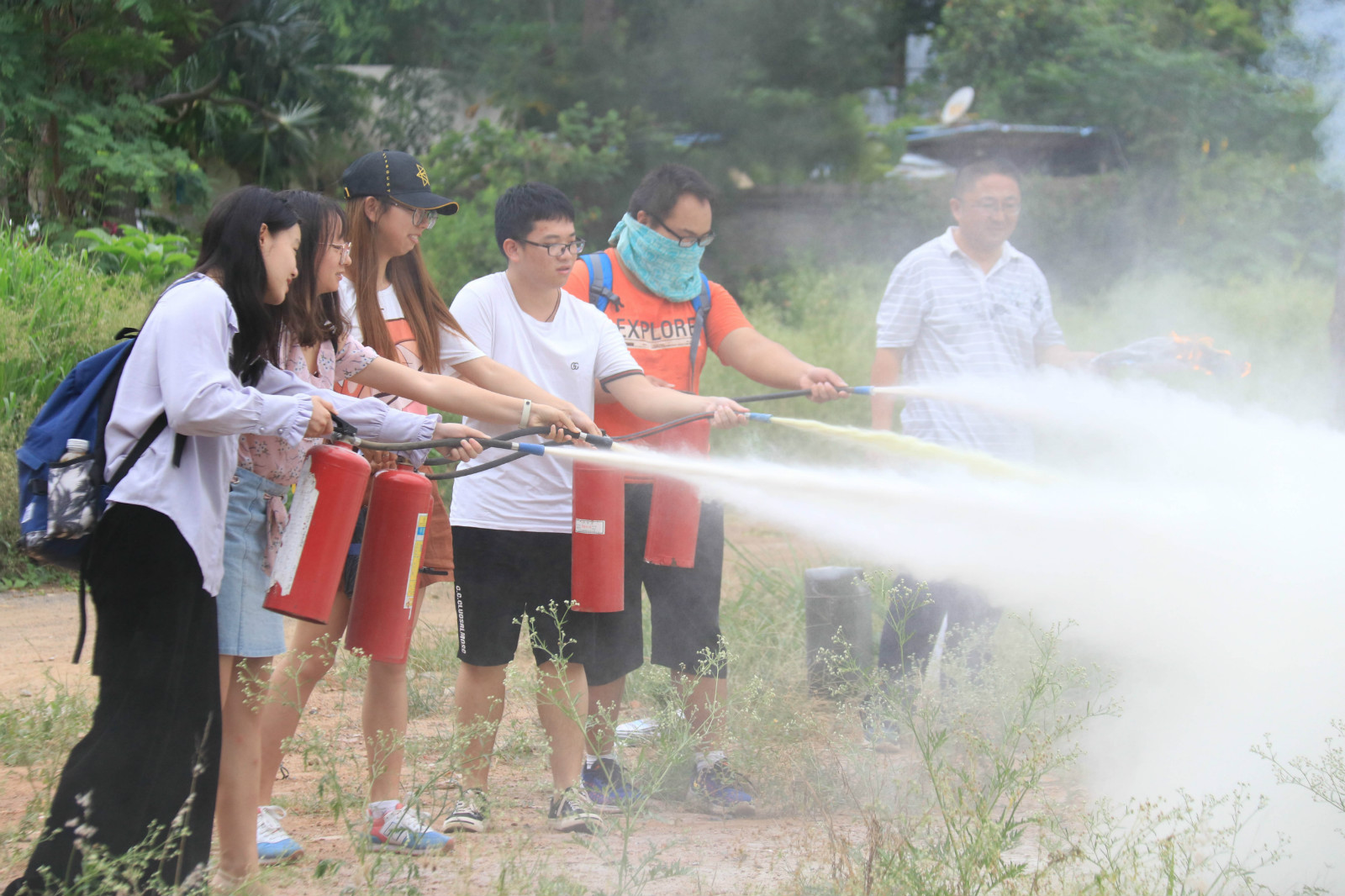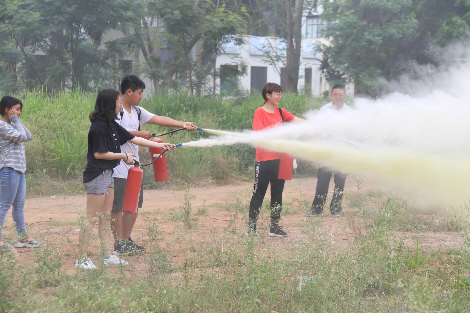同学们学习使用灭火器材2