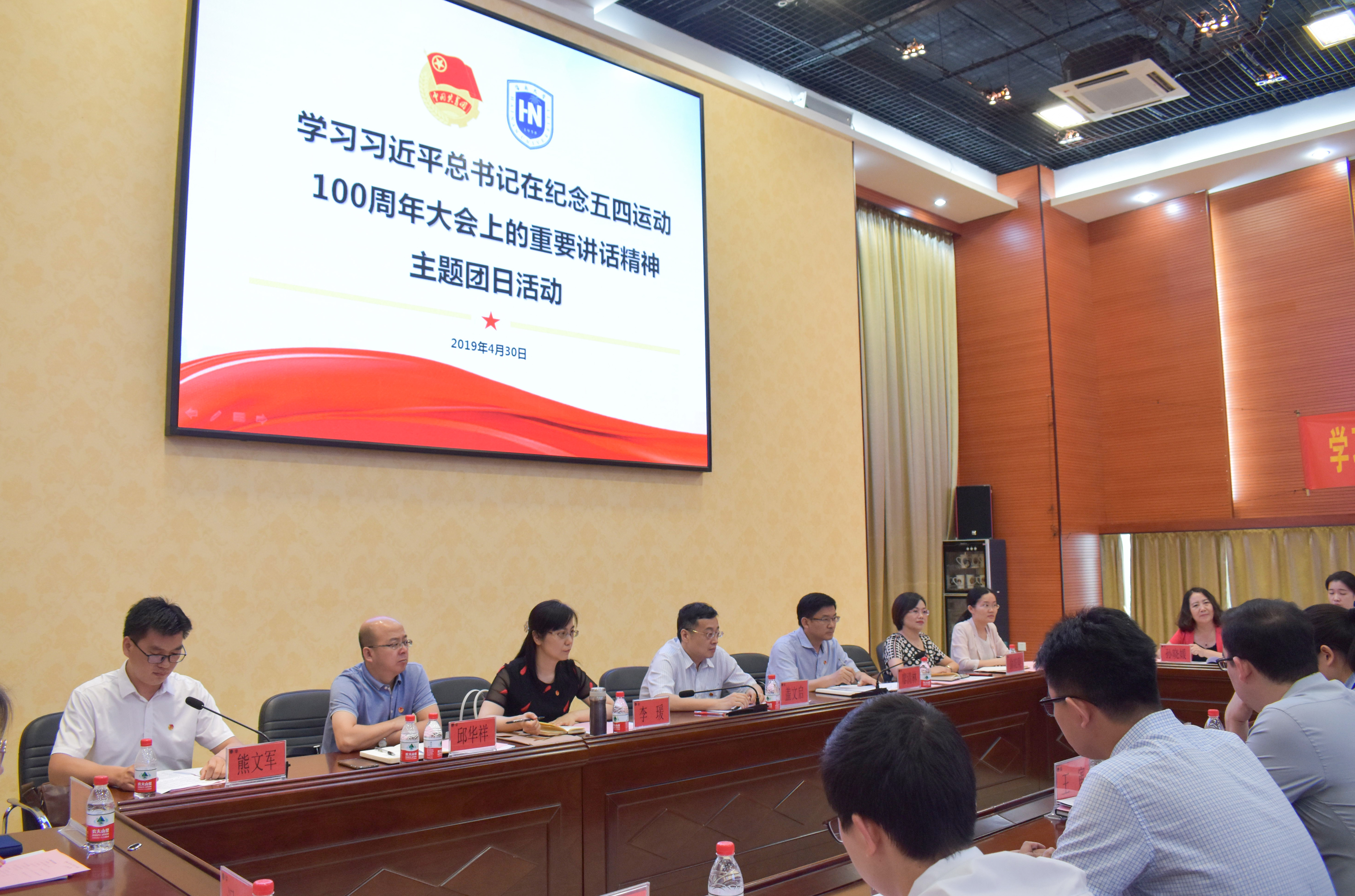 主题团日活动在庄严的团歌声中拉开序幕。活动伊始,盖文启、廖清林和青年师生代表们一同观看了由团省委原创、献礼纪念五四运动100周年的视频《海南青年》,传承百年五四精神,青春建功海南自贸区(港)。