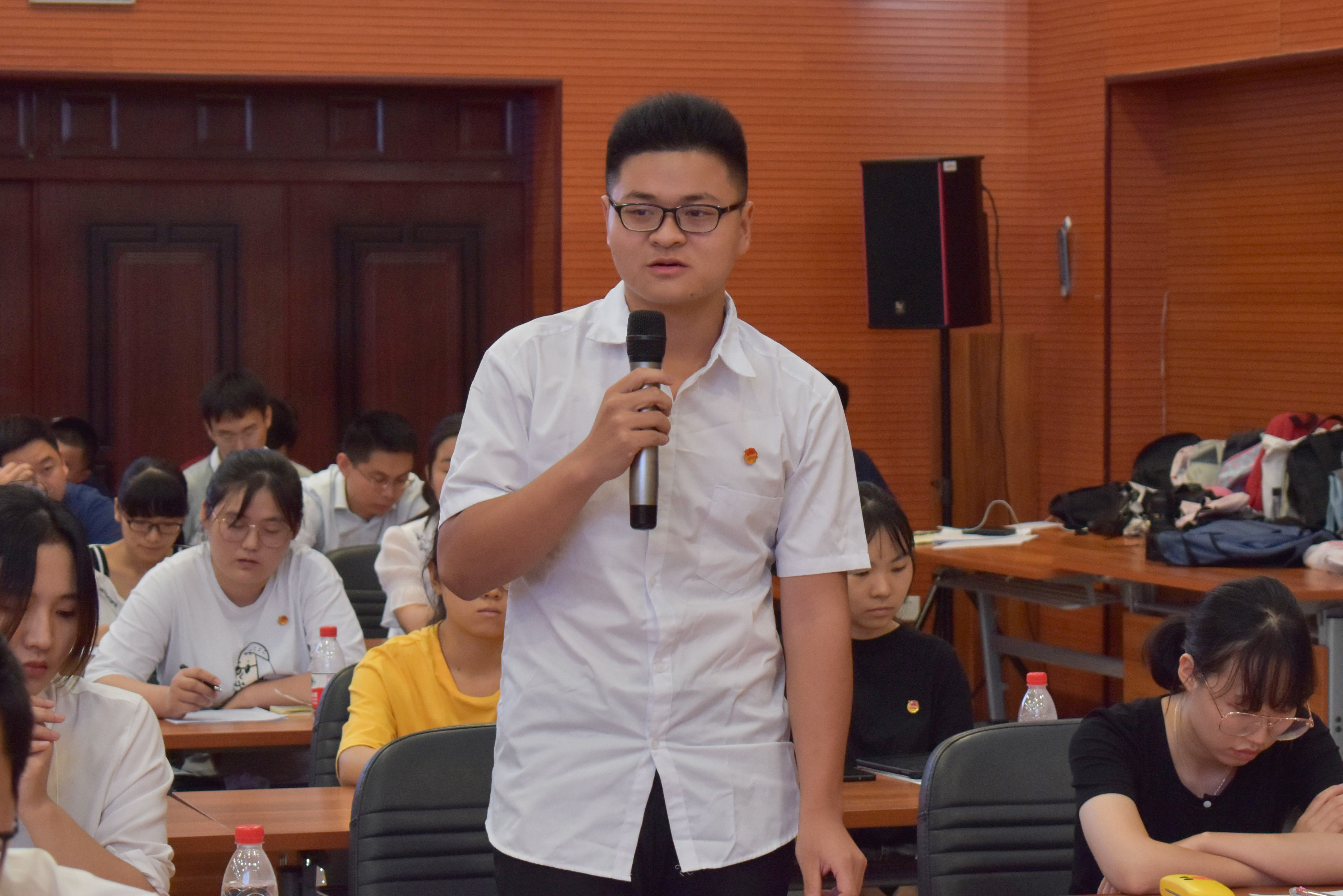 在活动中,2016级汉语言文学1班团支部团员代表踊跃发言,团支部书记郭瑞鹏同学在发言中介绍了2016级汉语言文学1班团支部的组织概况并结合习近平总书记的重要讲话精神谈了自己作为一名团干部的成长体会。支部团员代表翟颖结合自身专业谈了对五四精神的理解,表达了作为一名人文学科大学生所应有的使命与担当。支部团员崔在晖、郭钱明等也结合自身经历分享了学习感受。参加活动的专职团干部代表、青年教师代表、班主任代表也都从自身实际出发,分享了青年一辈对“五四精神”的独到见解与切身体会。