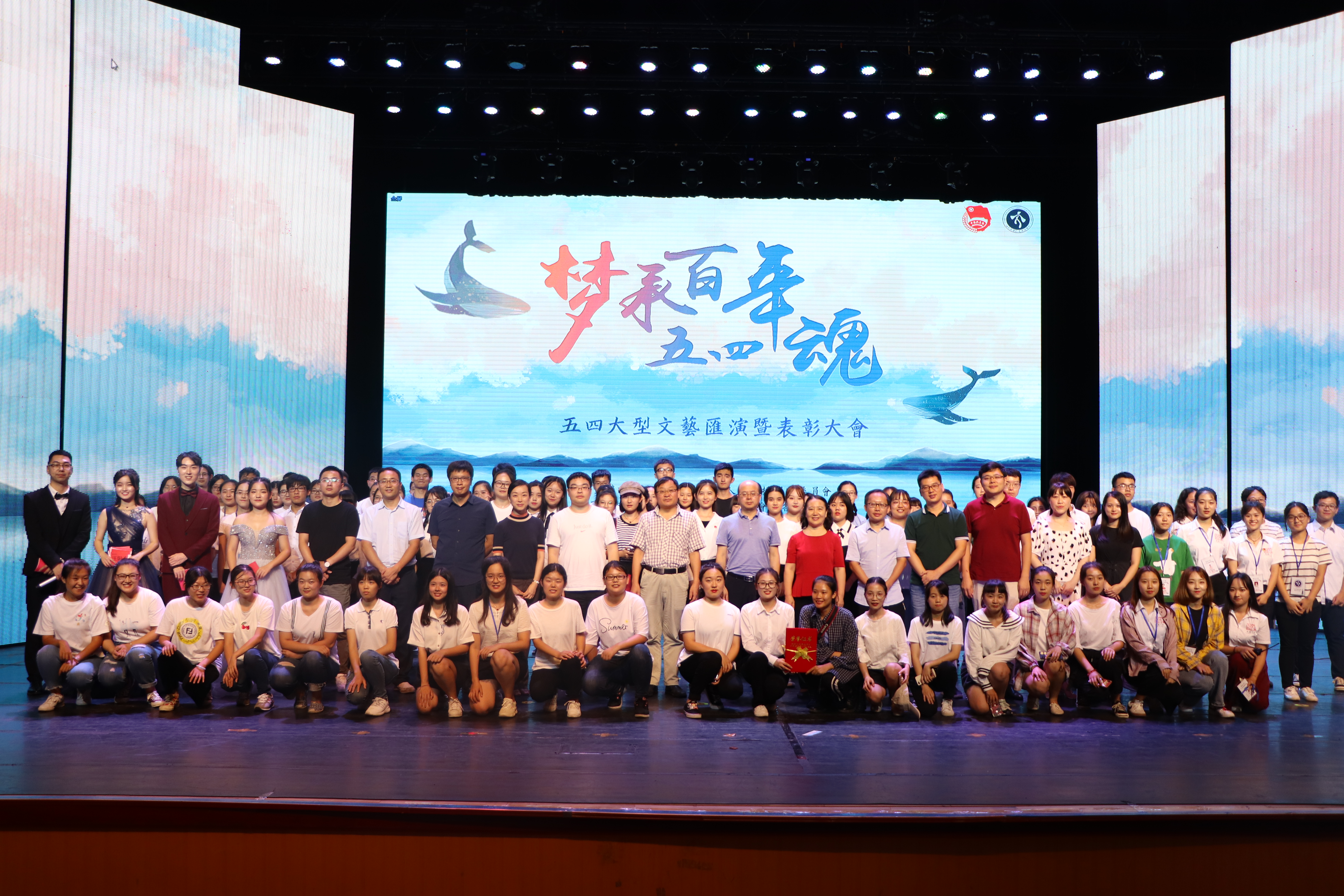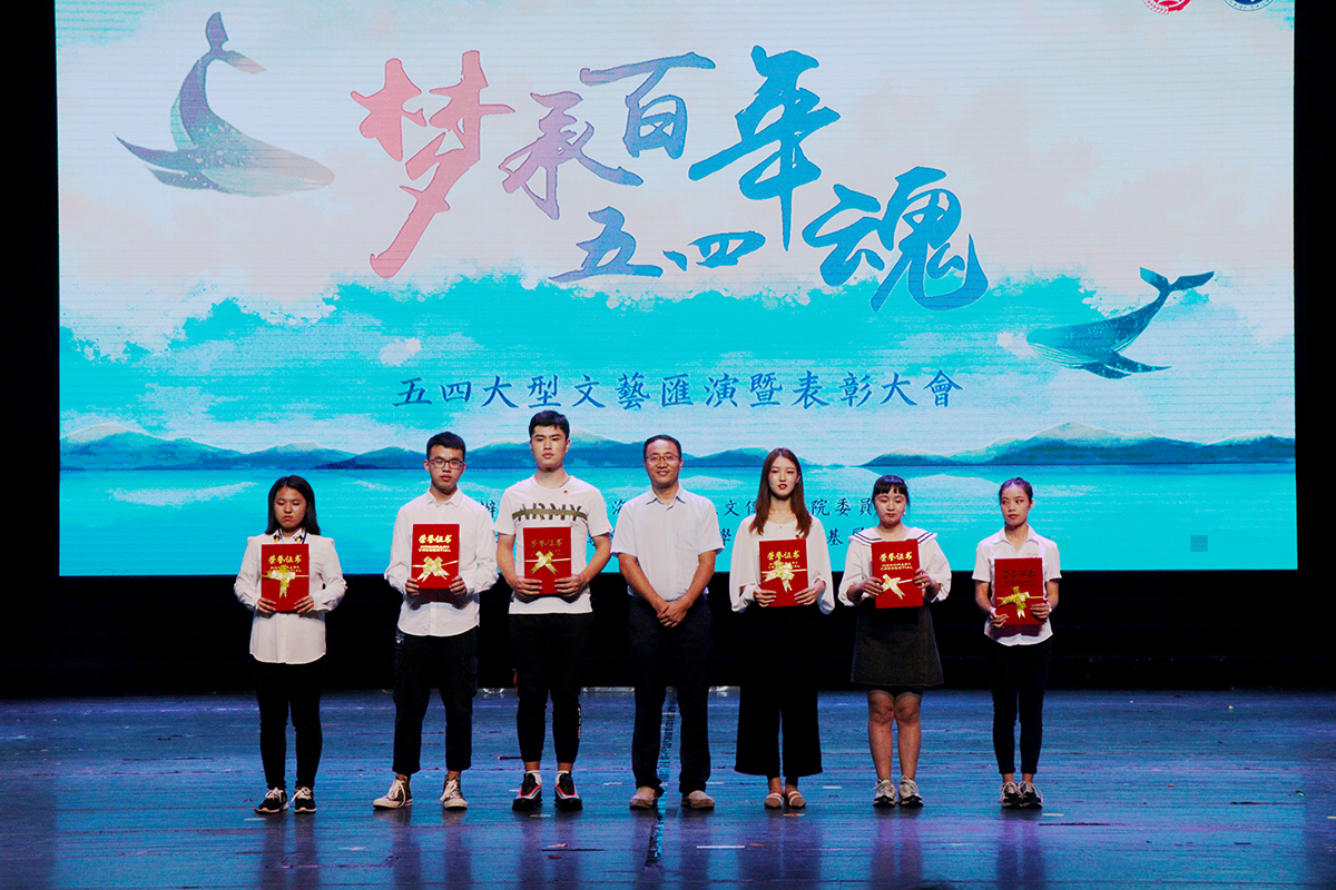 2019年5月12日晚19:00,人文传播学院“梦承?百年五四魂”大型文艺汇演暨表彰大会在思源学堂顺利举行。人文传播学院党委负责人邱华祥,人文传播学院党委副书记孙晓媛,团委、学工办、教务处的老师们以及各专业教师代表莅临晚会现场。邱华祥老师、孙晓媛老师以及各系教师代表担任本次晚会评委。人文传播学院16-18级各专业学生参与并观看本次晚会。