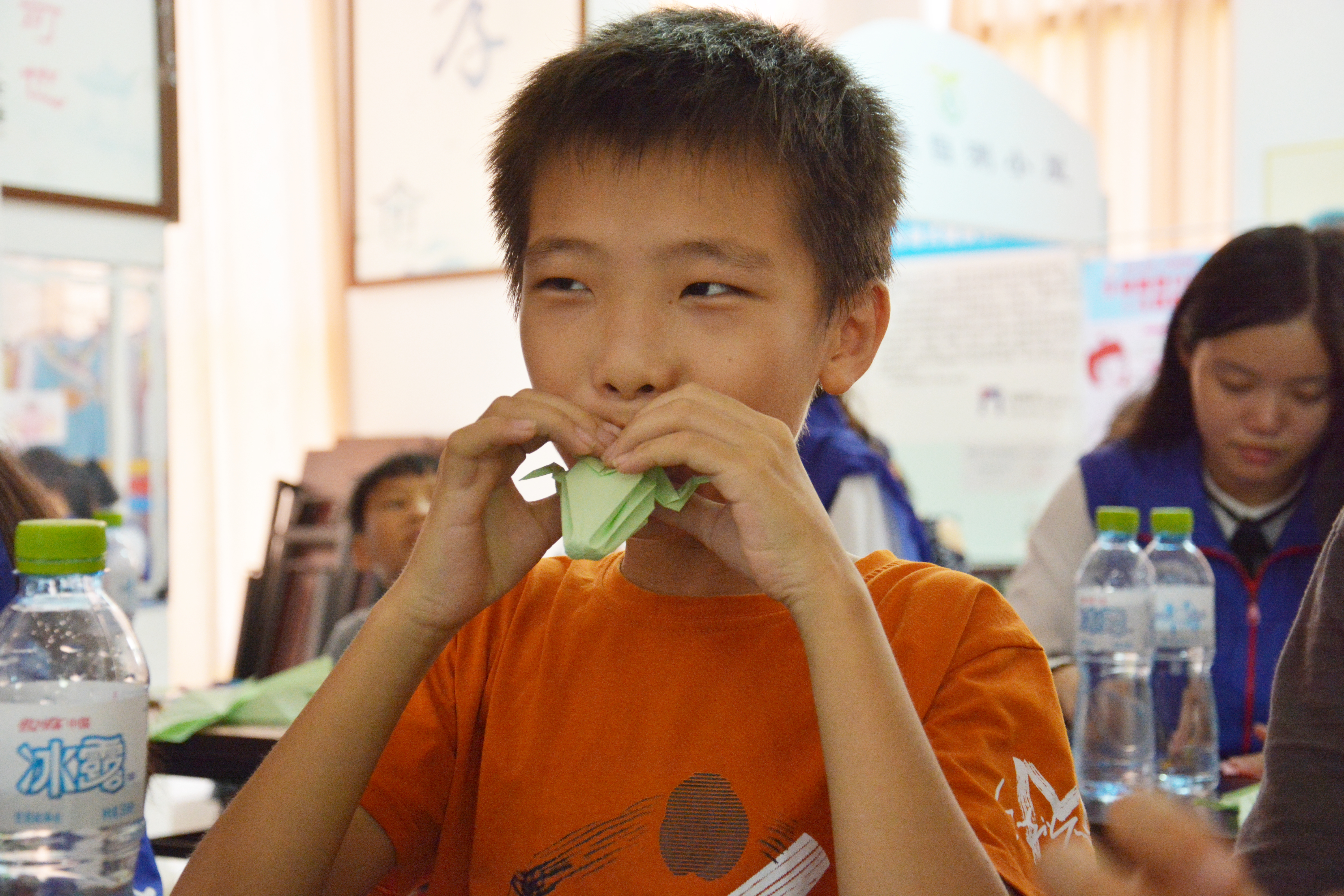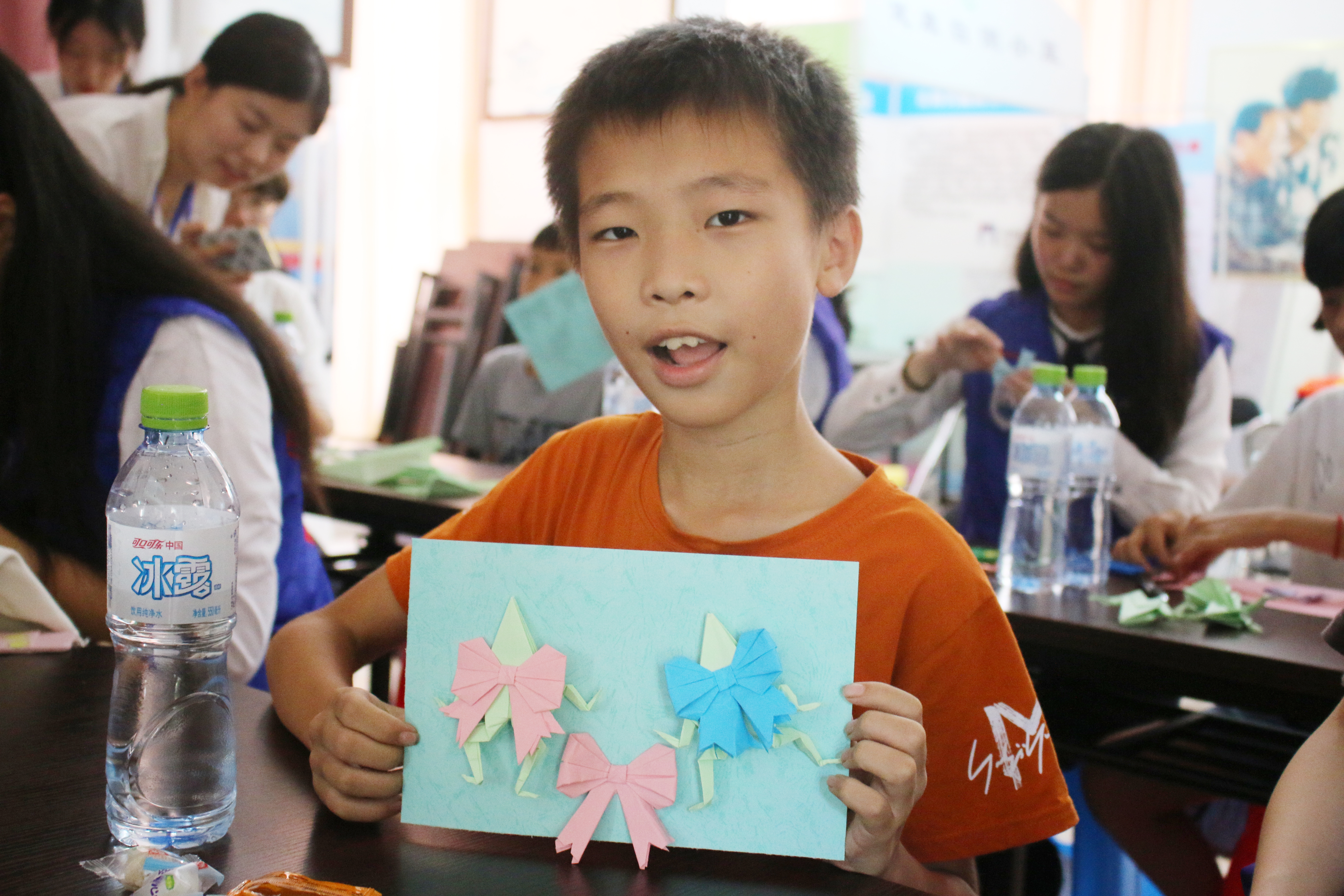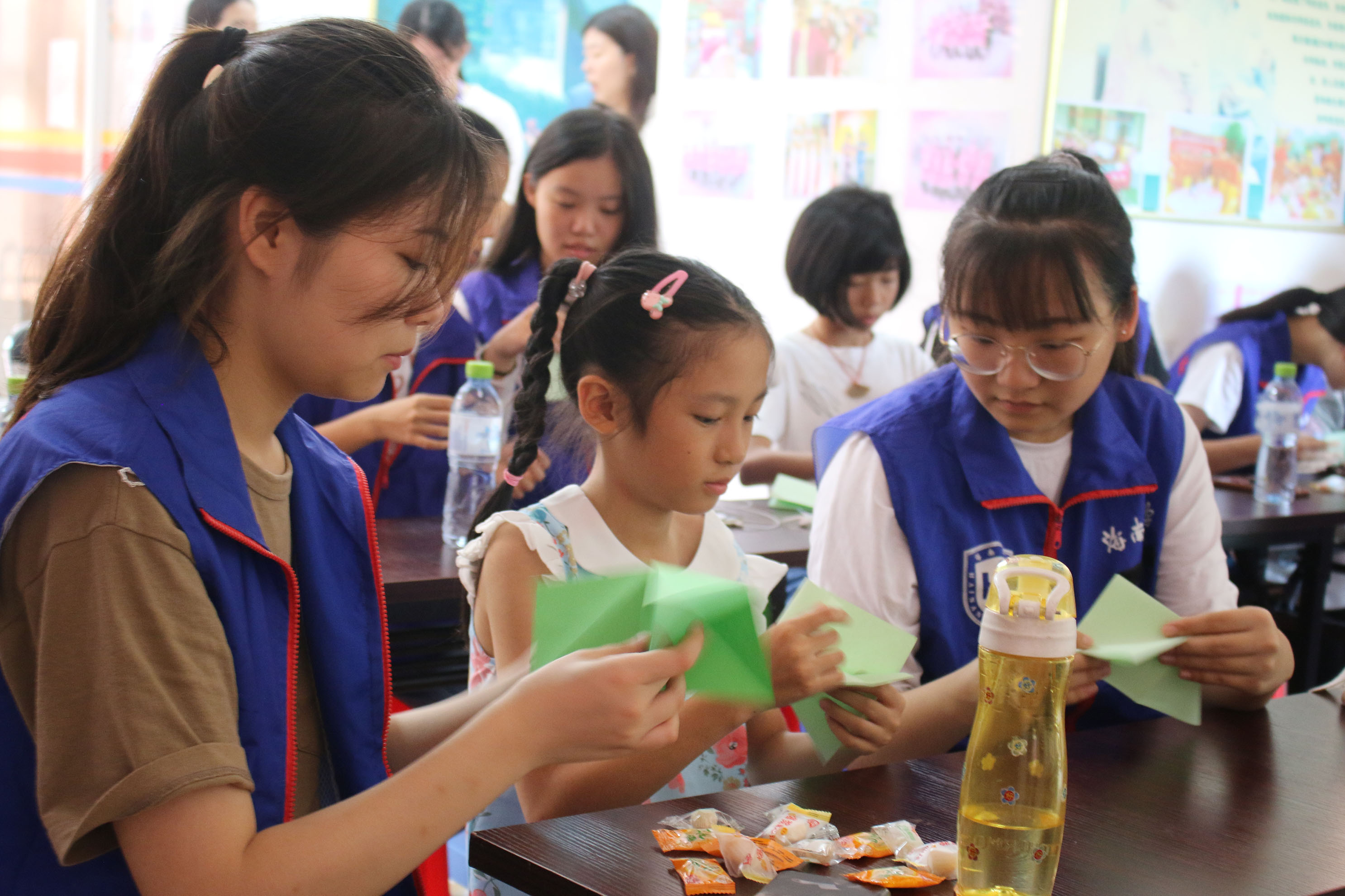 志愿者与孩子一起折纸