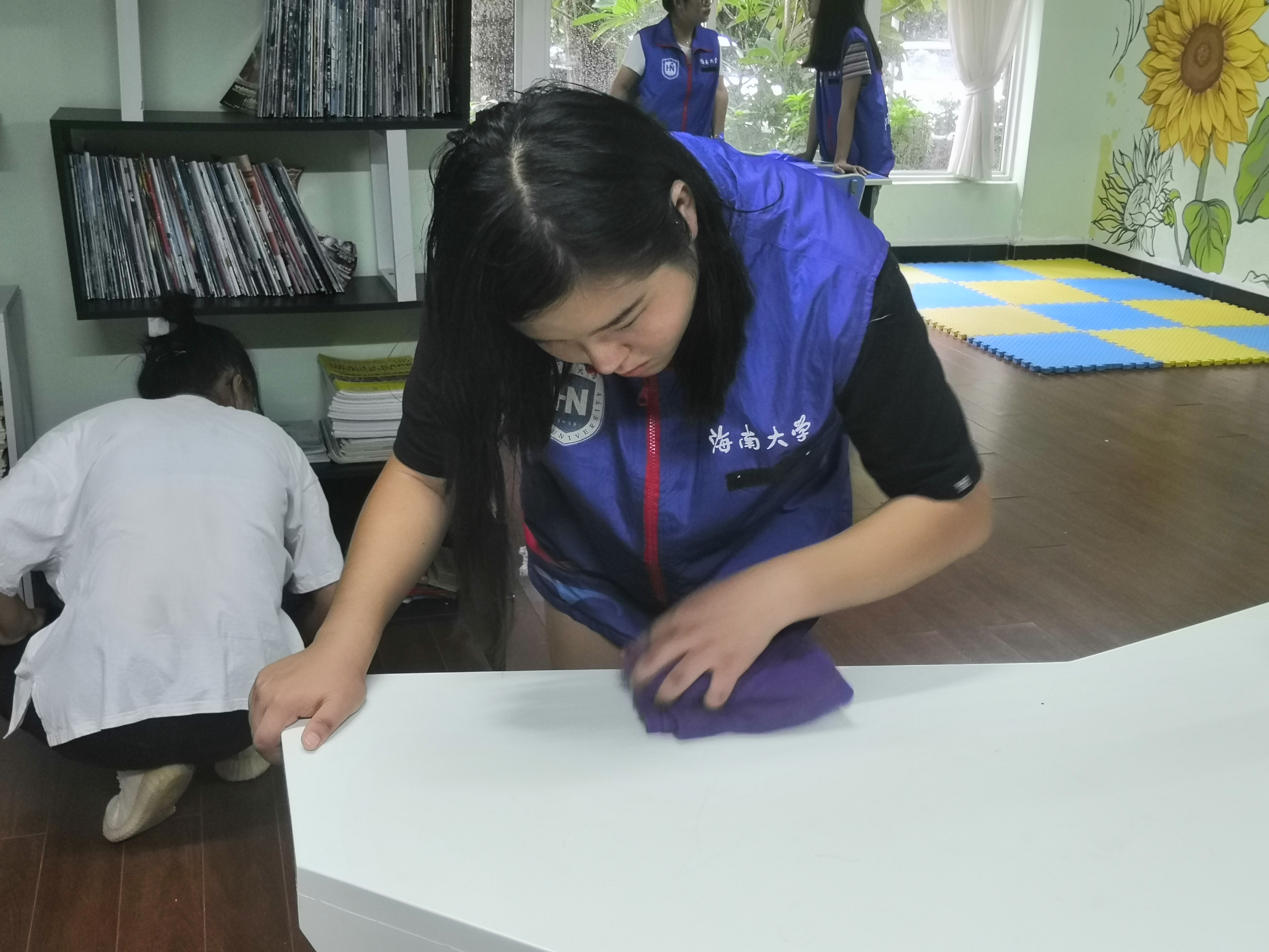 志愿者打扫书屋