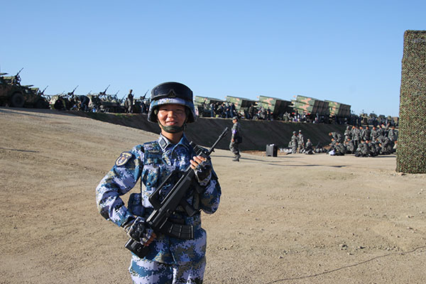 能够成为一名陆战女兵是我意料之外的事情,但想要戴好“三栖霸王花”的头衔,可并没有那么容易。2017年7月,刚下连不久的我就有幸参加了在内蒙古朱日和进行的建军90周年阅兵活动,这是中国海军陆战女兵的首次亮相,作为其中的一员,我深感骄傲与自豪,但更清楚惊艳与震撼的背后是刻苦的付出和辛劳的汗水。炎炎烈日下,从半小时到两个小时,每一次延长军姿时间都是对毅力的考验;从轻装到武装,每一次增加负重都是对极限的挑战。但我从未打过退堂鼓。