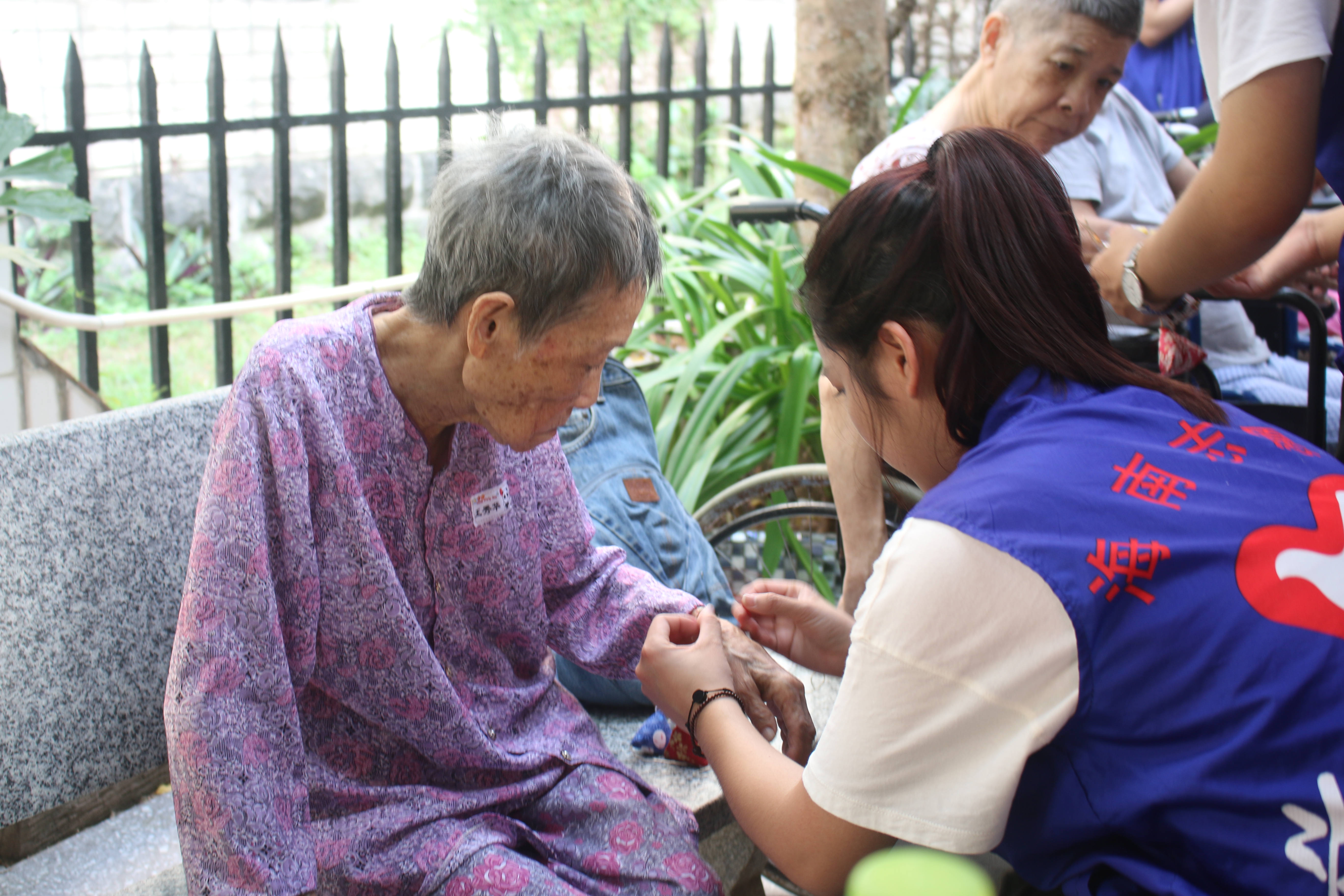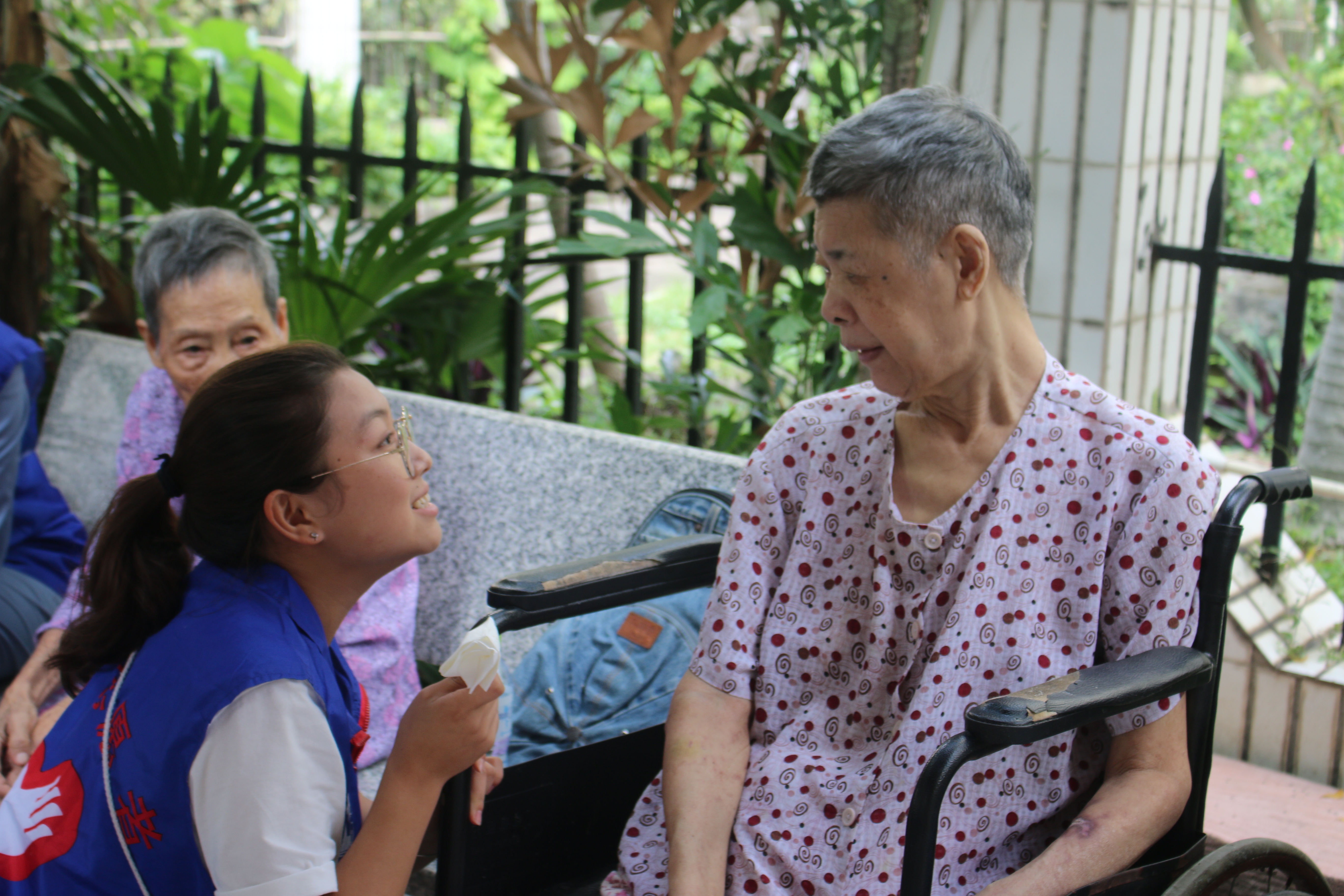 志愿者到达老年公寓后进行简单的布置,为稍后的表演做准备。午后的阳光洒在老人们轻松愉快的笑颜上。充满活力的舞蹈,缓缓流淌的歌声,有趣的相声,欢笑声充满在这个绿荫浓浓的小院里。“歌唱我们亲爱的祖国,从今走向繁荣富强……”一首《歌唱祖国》将活动推向高潮。老人们和着音乐唱起了歌,老人们微微颤抖的声音却表达了对祖国最真挚的爱恋。表演结束后,志愿者为老人们分发水果、糕点、按摩锤和艾草香包。老人们接过礼物,向志愿者们表达了感谢。几个小时的志愿活动在不知不觉中结束了。临别之际,老人们紧紧握着志愿者的手,不舍之情溢于言表。