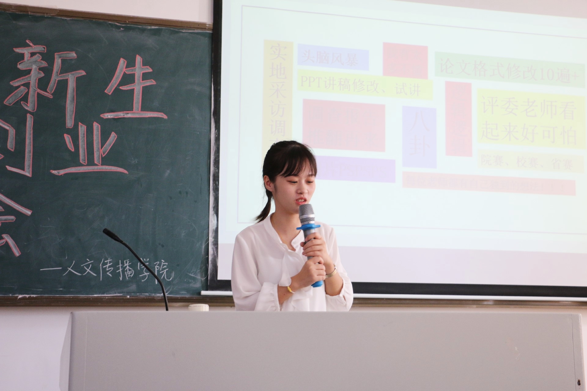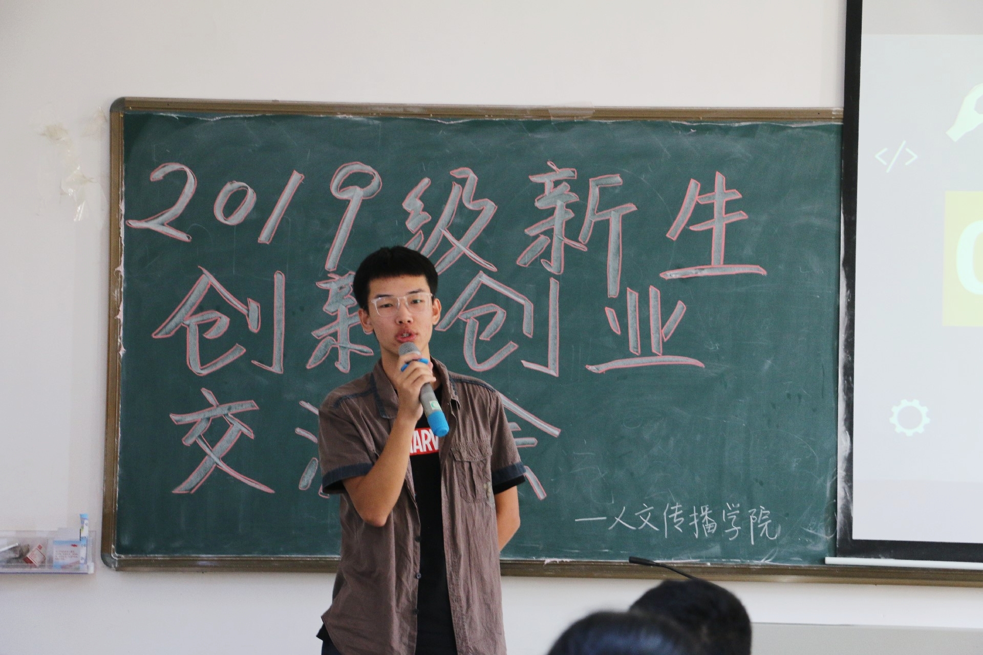 为更好地引导2019级新生投身创新创业活动,增进19级新生对“创新创业”的了解,2019年10月26日上午9:30,人文传播学院“青春聚力·创新同行”2019级新生创新创业交流会于城西教学楼9A01顺利开展。本次活动由人文传播学院团委创新创业部举办,16级广告专业创新创业优秀学生代表彭丽桦学姐和18级中文专业创新创业优秀学生代表王天祺学长进行了创新创业经验分享。约130名人文传播学院新生参加了此次活动。