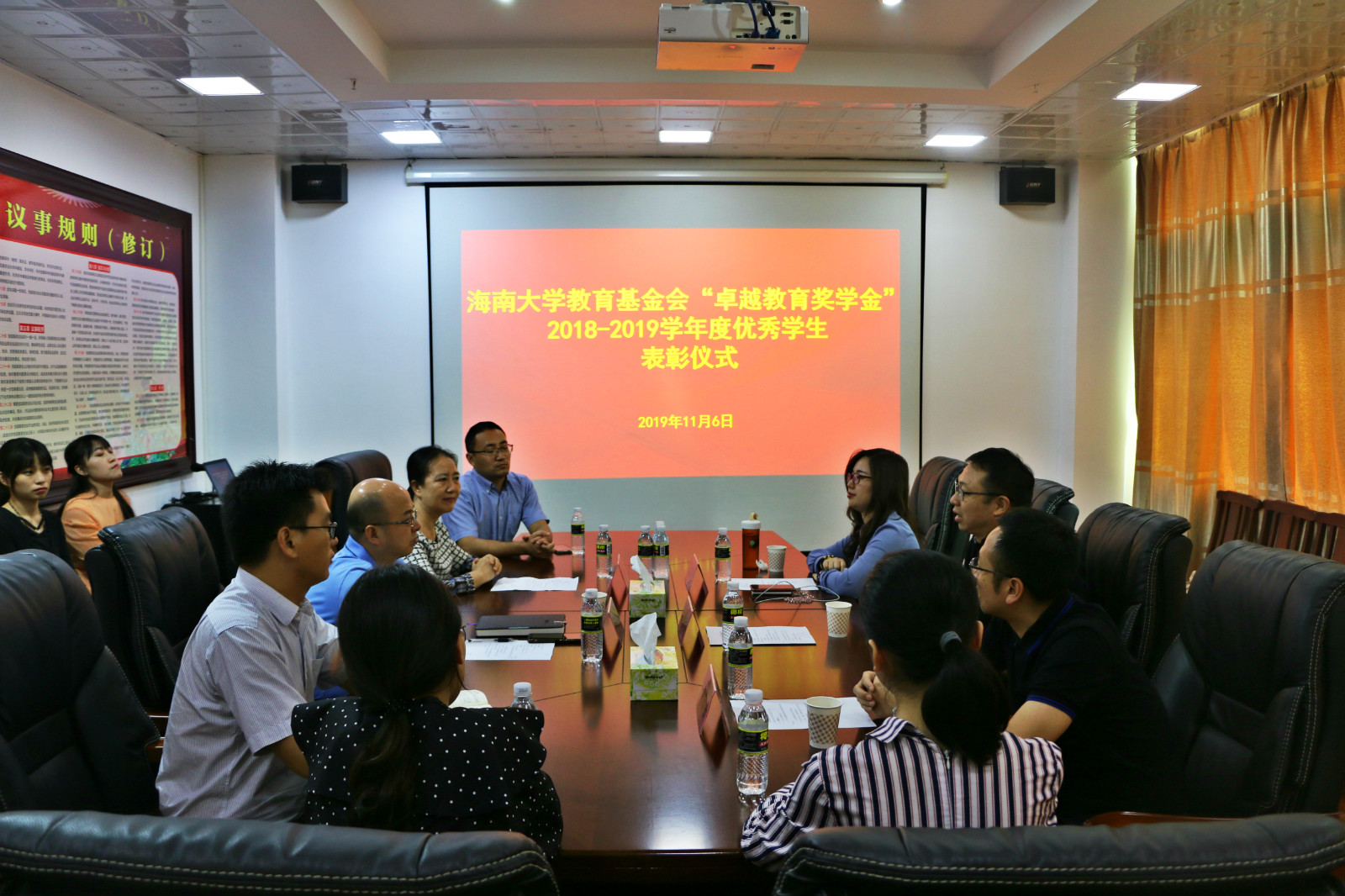 教育基金会“卓越教育奖学金”2018-2019学年度优秀学生表彰仪式。学院党委书记邱华祥、广州市卓越教育集团首席官兼深圳城市校长赵新军、副书记孙晓媛、广州市卓越教育集团深圳校区人力资源部黄端娜、招聘负责人刘苏云以及学工办全体辅导员出席本次表彰仪式。仪式由党委副书记孙晓媛主持,获奖学生代表参加。