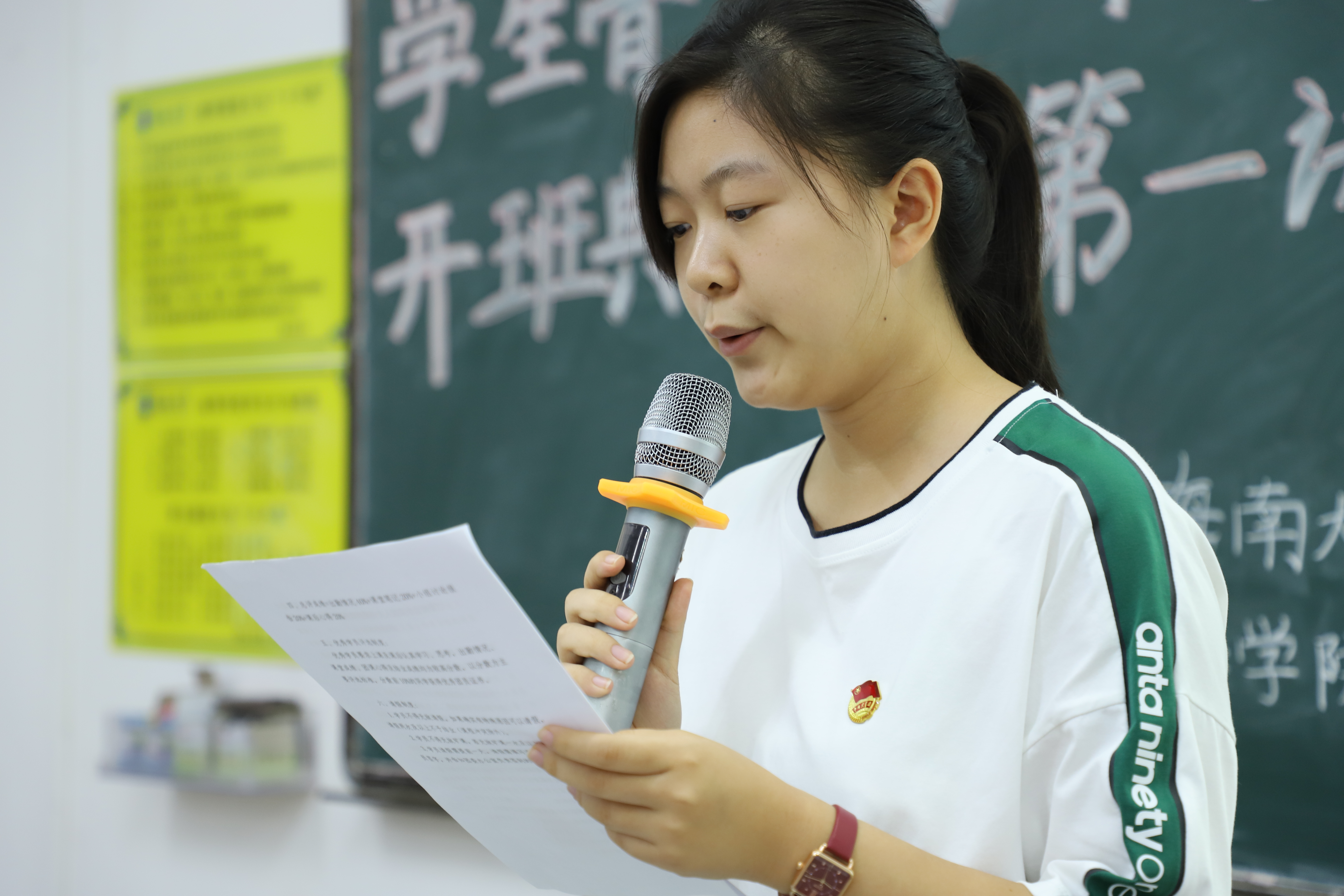 主持人马昱含上台依次介绍到场嘉宾并宣布人文传播学院分团校学生骨干培训班正式开班。
