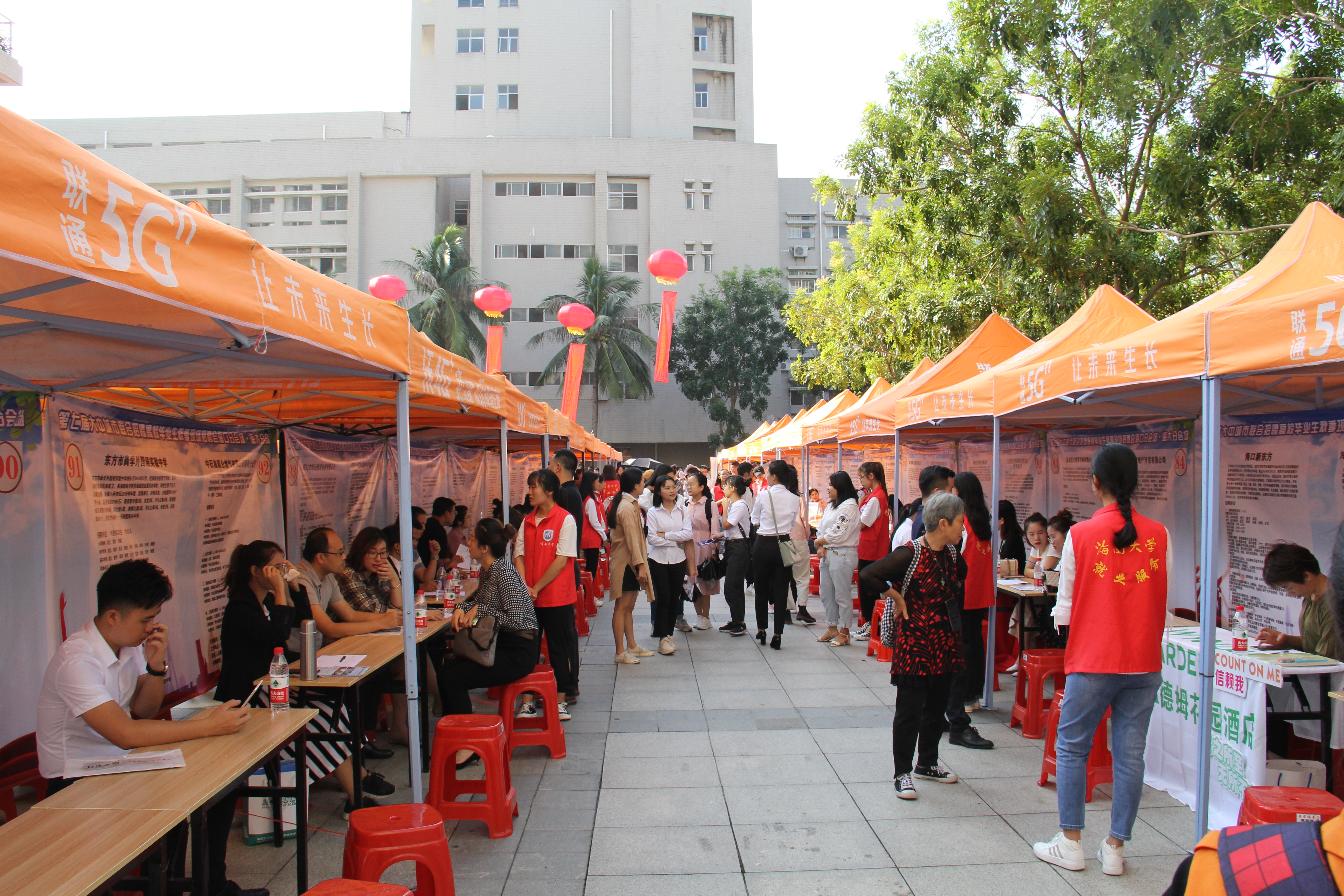 招生就业处积极响应《人力资源社会保障部办公厅关于开展第七届大中城市联合招聘高校毕业生专场活动的通知》精神,为应届毕业生求职择业和用人单位招聘人才,促进人力资源合理配置搭建平台、提供服务。据悉,此次招聘会比去年规模更大、参与企业更多,吸引了诸如椰树集团有限公司、苏宁易购集团股份有限公司等到场招聘。前来应聘的应届毕业生积极投递简历并与用人单位招聘人员展开双向交流。同时,也有非毕业班学生来到现场,提前了解招聘、就业情况,进一步完善自身的职业生涯规划。现场人头攒动、气氛高涨。碧桂园凤凰国际招聘工作人员在采访中表示,公司更看重应聘者的专业知识对口性与实践经历。她同时提到灵犀直播