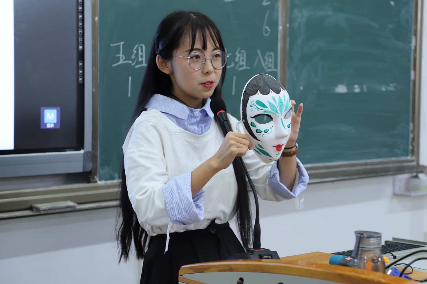 活动伊始,主持人简洁地介绍了本次活动的内容,而后,学院团委学生副书记施雅馨上台致辞。紧接着,学院团委男团倾情献唱,为同学们带来《光阴的故事》以及《水手》,两首歌曲的演唱仿佛将观众们带回到童年,活动现场氛围逐渐升温。精彩的表演过后,活动进入了第一个游戏环节——故事接龙。现场全体同学共分为八组,由每组派出三名代表依次对故事进行续编,同学们脑洞大开。在第一环节的头脑风暴后,同学们来到了经典的“你画我猜”接力游戏,在这个游戏环节中,每组各派出五名代表,第一名同学在看到词条后向后比划,后面的同学依次模仿,直到将信息传递至最后一名同学。面对难度不一的题目,同学们卖力表演,观众们看得津津有味。既是游戏,自然也有胜负,本轮比赛中排名最后两组“光荣地”承担压轴节目表演。随后,本场活动的重头戏——画面具开始进行。同学们拿起画笔,各显神通,笔下的面具有的精致唯美,有的粗旷豪放,有的憨态可掬。面具绘制的最后,各组同学们纷纷推选出自己心里的最美面具上台分享面具的设计理念,最后由评委们评选前三名送出精美礼品。活动接近尾声,也到了揭晓游戏环节中的精彩惩罚的时刻——由各学生组织的男负责人们组成的人文传播学院男团“C位”出道,一曲《野狼disco》嗨翻全场,活动又一次被推上高潮。