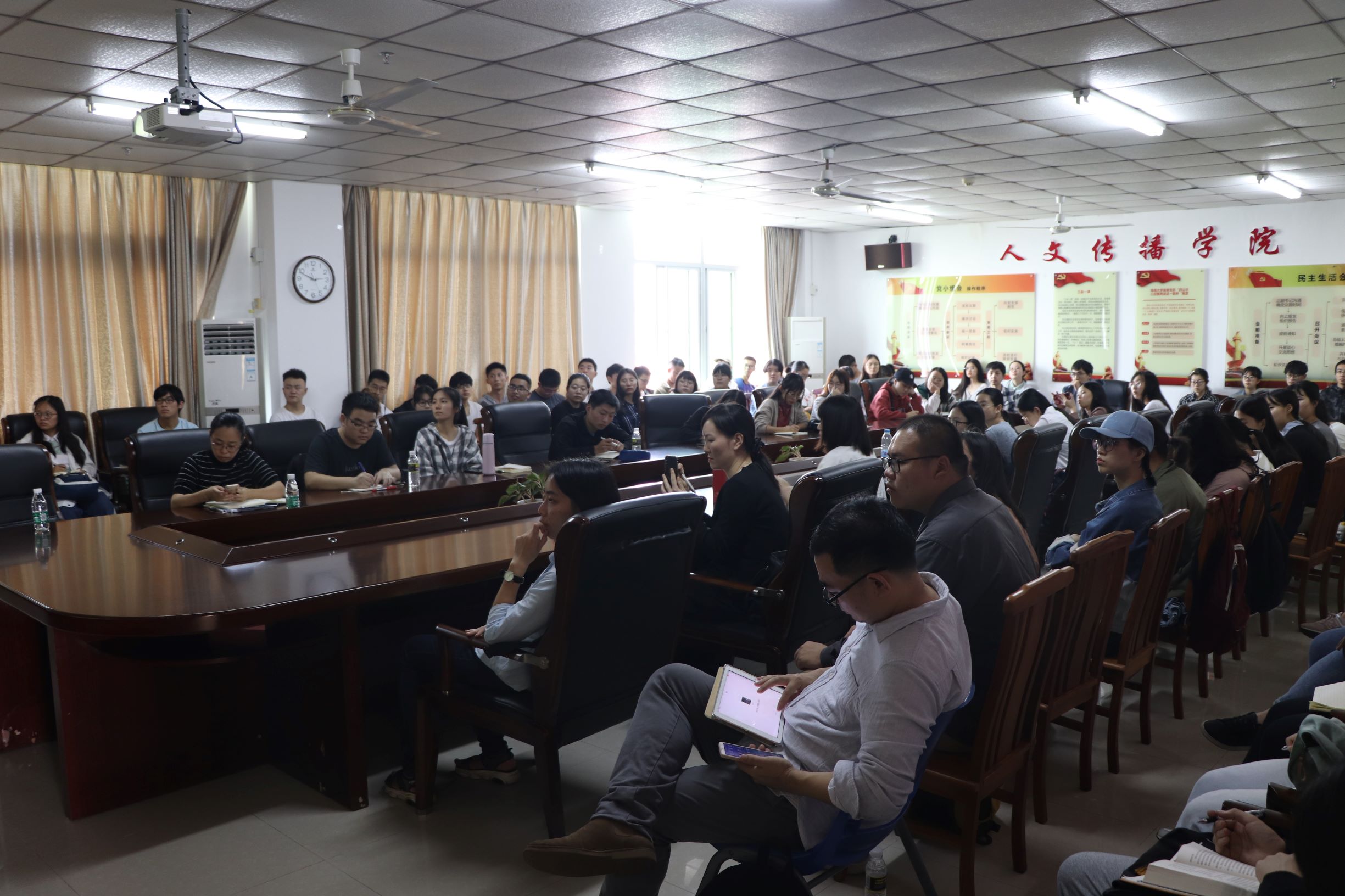社科楼b719会议室顺利开展。苏州大学文学院教授季进担任本次讲座的主讲人,人文传播学院汉语言文学专业、汉语国际教育专业部分同学参加此次讲座。