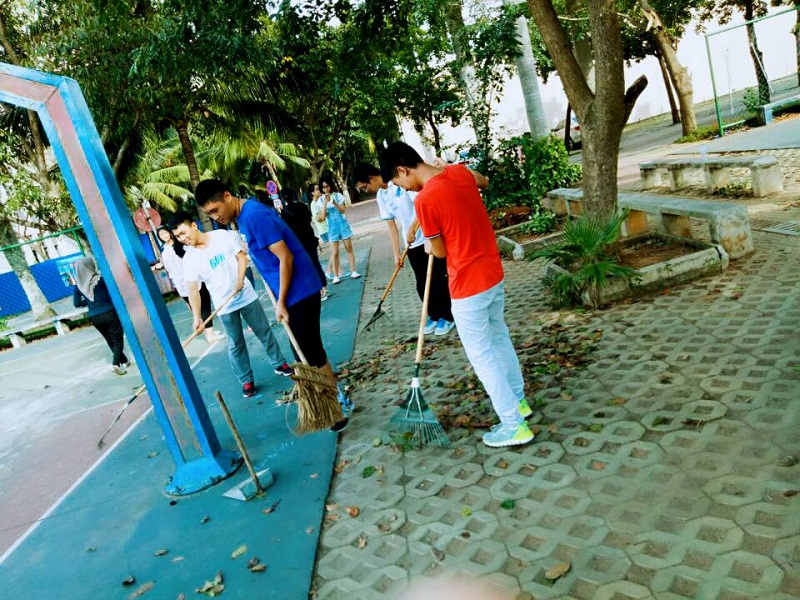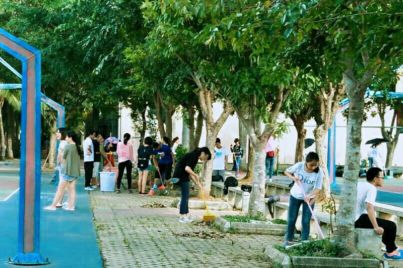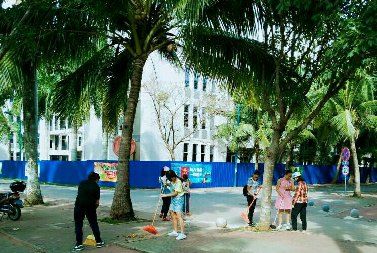 2016级志愿者以“志愿清扫,擦亮校园”为活动主题,在灵犀直播