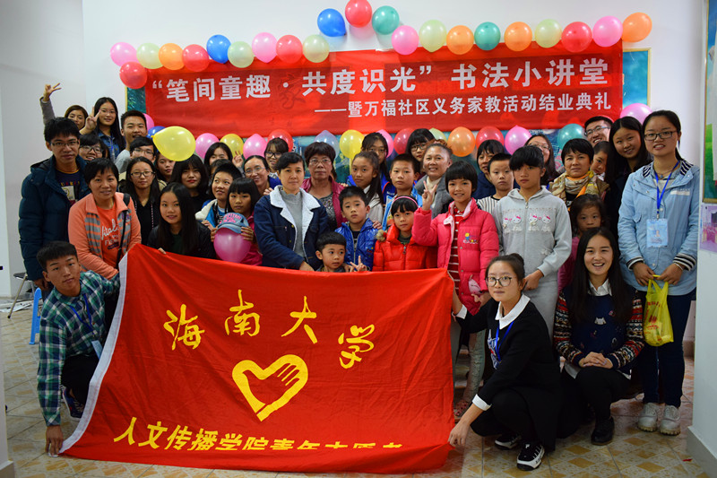 书法协会、美兰区万福社区举办了“笔间童趣.共度识光”书法小课堂活动。此次活动有幸邀请到了美兰区人民街道团支部副书记王敏敏、万福社区团支部书记徐佳龙、万福社区志愿服务站站长毛小姬。本次活动作为本学期万福社区义务家教的结业典礼,为该活动画上了一个圆满的句号。