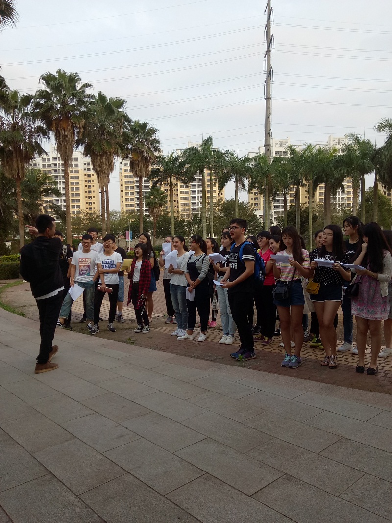 城西校区神农园顺利举行。人文传播学院2016级全体学子积极响应,外国语学院部分学生和学工办王俊延老师作为嘉宾参加了此次活动。 活动开始后,参加活动的同学们根据自己的兴趣爱好进行组队,共分为四个小队:英语口语队,日语口语队,诗歌队,散文队。经过40分钟的嘉宾领读和自由朗读,同学们以小组为单位进行成果展示。小组展示过程中,英语口语队字一声声正腔圆的交际用语让其他队的同学们刮目相看;紧接着,日语口语队的同学也用一首日文歌曲惊艳了全场;作为中文特色的诗歌队和散文队也不甘落后,用优美的词句征服全场。在活动的结尾,学工办王俊延对此次活动进行了点评,肯定了同学们的精彩表现,也对同学们提出自己的期望。 本次活动在轻松愉悦的环境中圆满落幕。一日之计在于晨,此次活动的圆满解决不仅使同学们增长了知识,也有利于更多的同学养成良好的学习习惯和作息习惯。