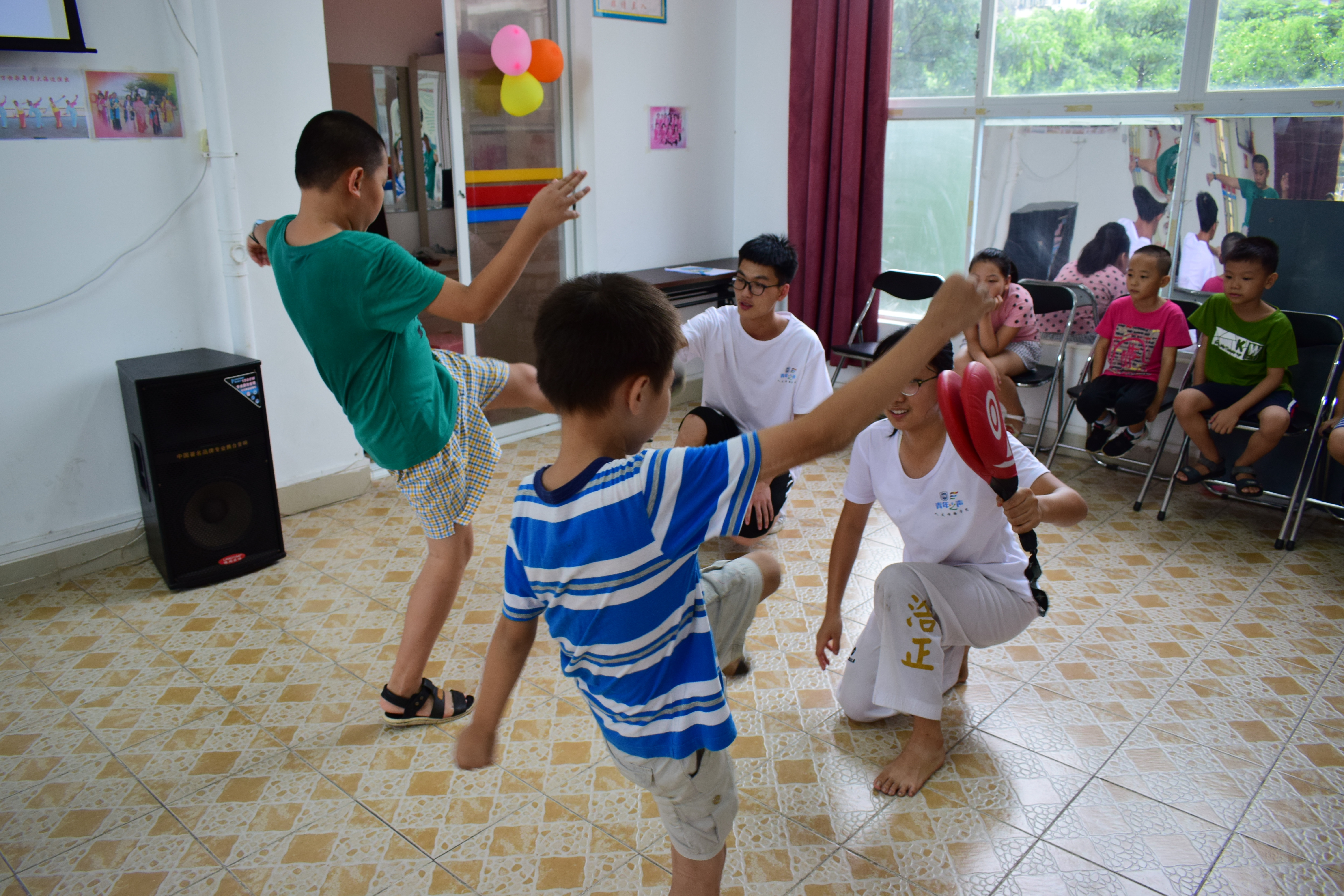 下午的活动主要以课外兴趣培养为主,在主题学习的基础上,志愿者还进行了跆拳道,手工折纸、剪纸与绘画等教学活动,这大大了丰富小朋友们的课外兴趣生活,使他们在玩乐的同时有所收获与感悟。