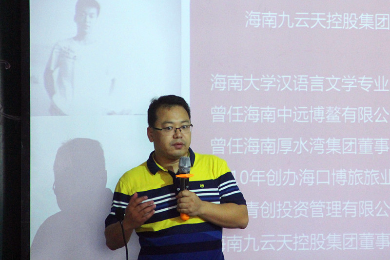 优秀校友,海南九云天科技股份有限公司董事长王富强先生应邀参加此次培训交流会并为2017级新生授课,学院团委书记熊文军、创新创业优秀学生代表马鑫、吴雅琪和林静也应邀参加此次培训交流会。