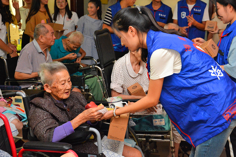 志愿者与老人亲切交流