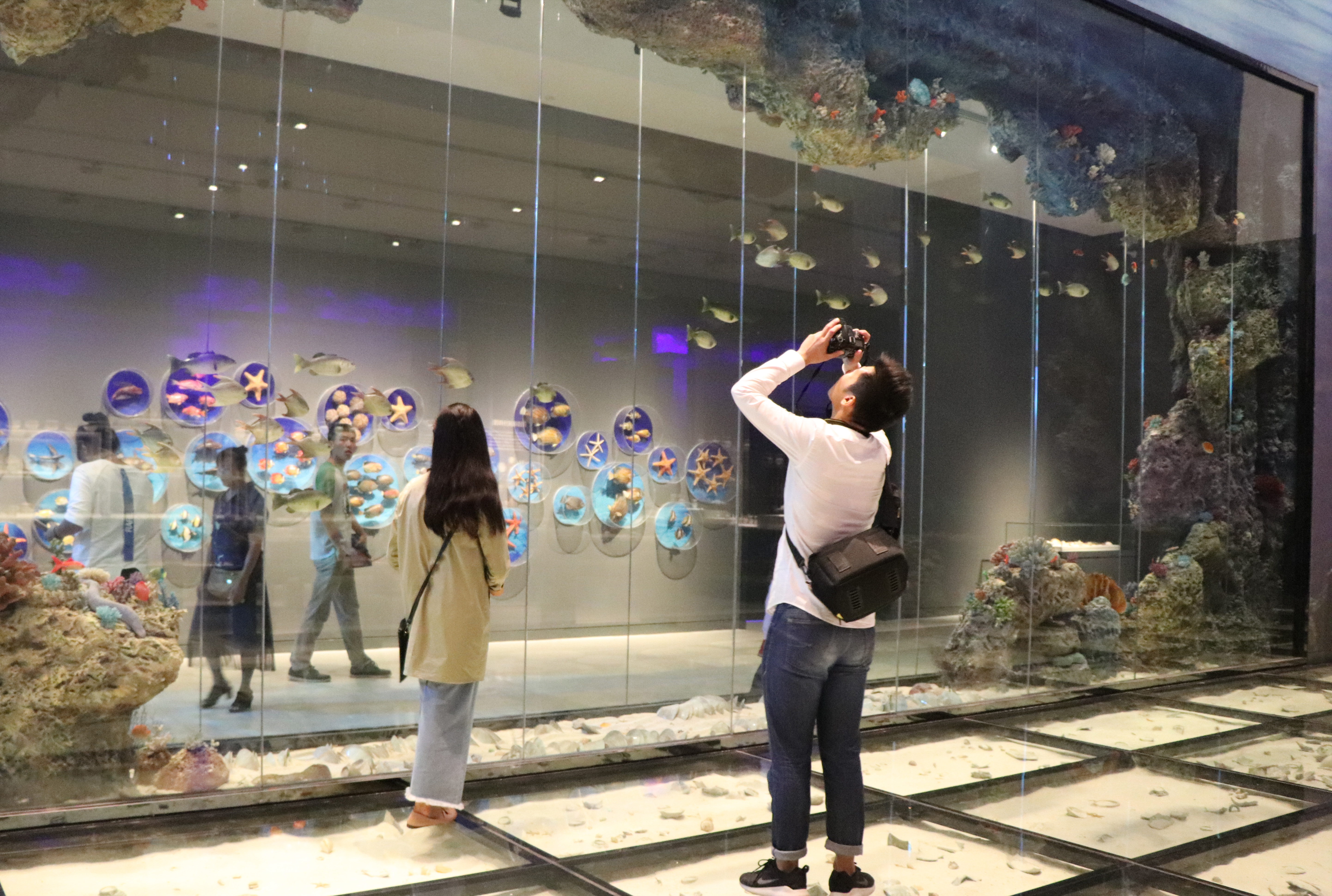 海南是一个多元文化的交汇之地。千百年来众多民族和其文化在热带海岛的摇篮中汇集、融合、发展,形成丰富多彩的海岛文化,海南风情展馆就让海大学子领略了这仙凡之间的美好,感受到海岛独特的民族文化和地域文明;同时在极其现代化的展厅中观赏科技带来的神奇,海南天文地理和政治历史经济被绘声绘色地呈现在同学们的眼前;而南海海洋文明陈列馆则更是让同学们眼前一亮,驻足许久,南海文化、南海经济、甚至是南海渔民的精神都在南海历史留下了浓墨重彩的印记,海南沧桑海疆的变迁让同学们叹为观止。