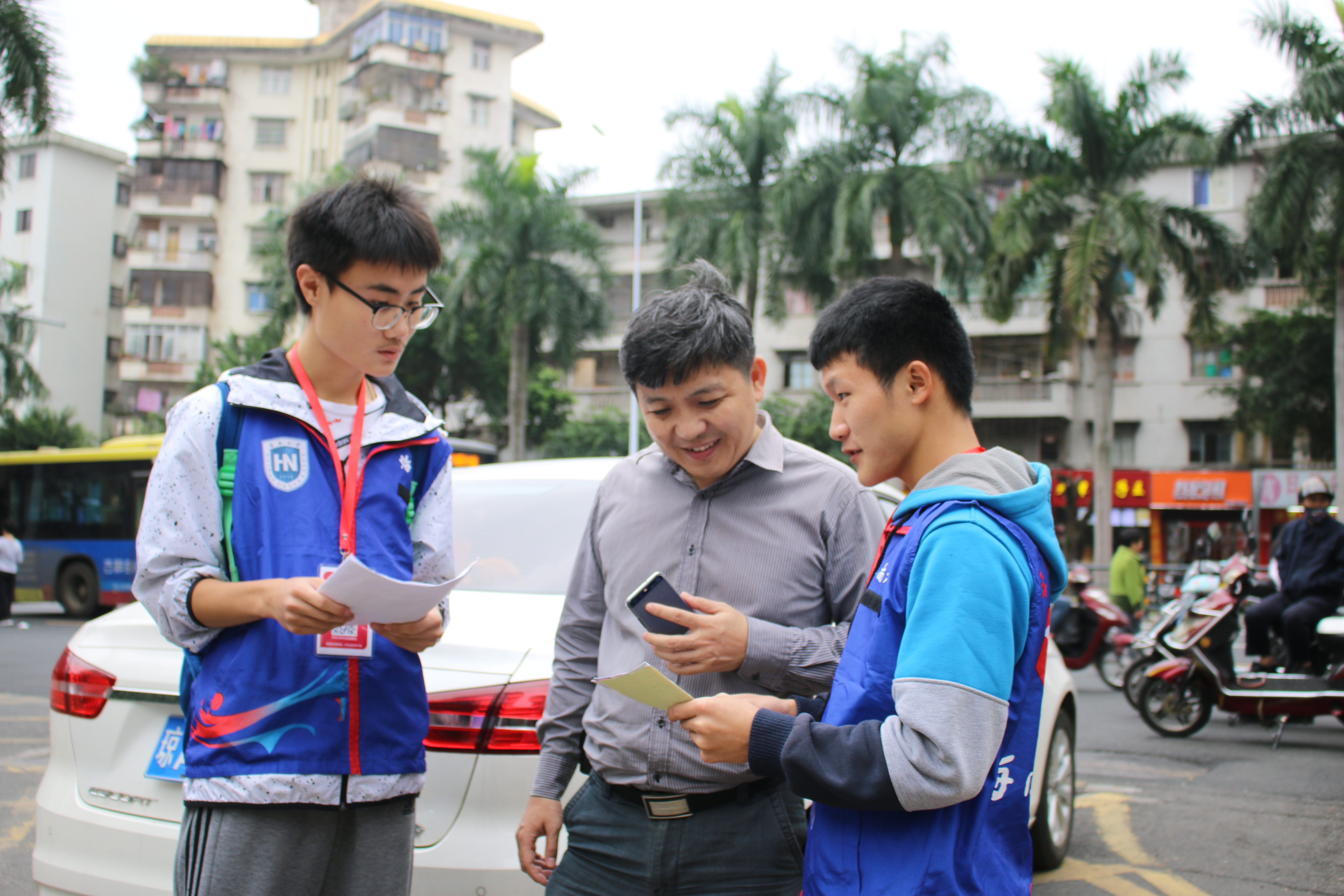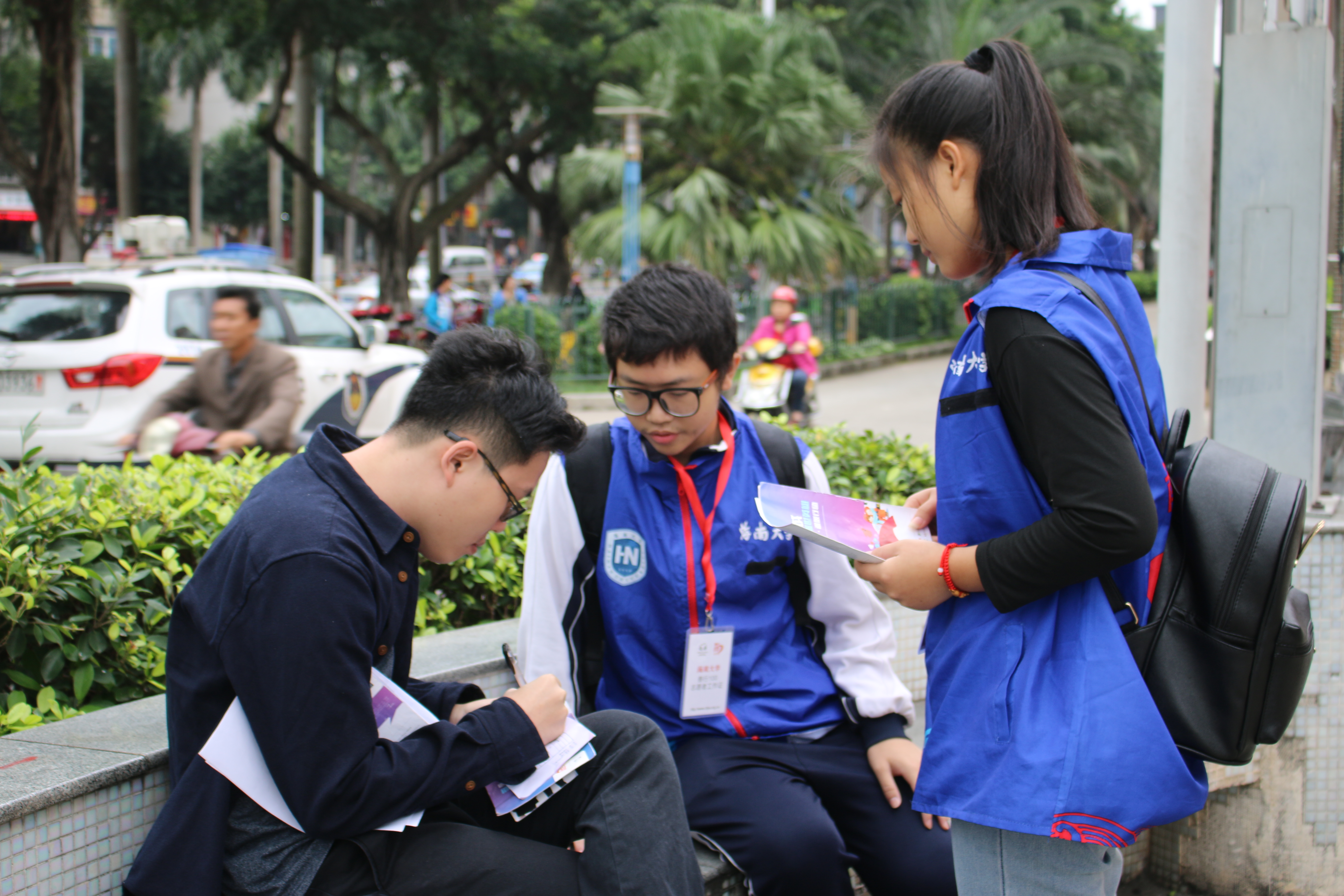 (城西校区)集合并签到,一同乘坐公交车前往海秀中路邮政营业厅。到达目的地后,由青协工作人员为志愿者们详细的讲解了劝募的具体流程和活动注意事项,为他们分发了带有二维码的工作证、活动宣传单、以及劝募成功后需要填写的三联单等物品。之后,志愿者们两人一组,前往附近的街道开展劝募活动。他们耐心地向每一位过往的路人介绍本次活动的内容及意义,并号召大家进行募捐。尽管在劝募过程中,志愿者们被拒绝、被质疑,但这并没有磨灭志愿者们的初心与信念。在海口市的街头巷尾,我们依然能看到志愿者们的小小身影。期间,有位志愿者在经历多次拒绝后,终于劝募成功,她表示:“真没想到我今天能成功,看到叔叔扫码支付100元的善款时,我超级激动,比抽中奖还幸运,对于这样的好心人,除了感谢还是感谢……”在这场为爱的大作战中,志愿者们用最切实的行动与最真挚的感情默默付出着。中午,在志愿者们的齐心协力和社会爱心人士的无私奉献下,劝募活动圆满完成。