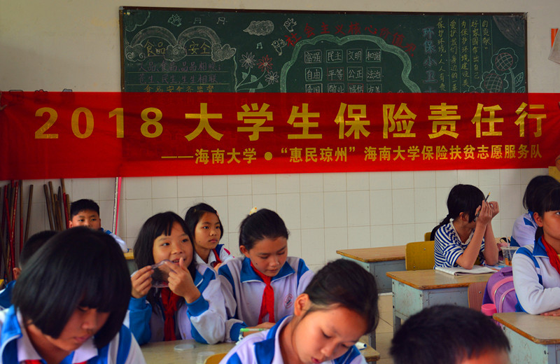 保险扶贫志愿服务队在3月3日—3月5日、3月5日—3月8日开展了为期一周的实地调研及宣讲活动。活动过程中,团队先后在海口和儋州的街道社区、公园、商场周边等人群相对密集的地区展开宣讲调研,并向市民发放了宣传读本,活动得到了他们的积极配合与普遍欢迎。3月13日,团队走进海南省海口市红联小学开展了校园宣讲活动,为孩子们带去保险理念和风险意识。此次活动,由团队队员分别进行农业保险、大病医疗保险、车险、人生意外伤害险的知识宣讲。在宣讲会过程中团队成员明显感受到了同学们的互动和热情,也扭转了一些同学以前的错误观念,并向同学们普及了保险知识让同学们正确认识保险的重要作用,并且让同学们对保险知识有了进一步了解。