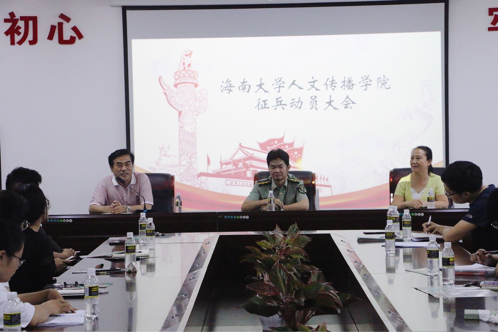 征兵工作提出两点希望和要求:一是希望大家积极投身军营,参军入伍是每个青年大学生应尽的责任和义务,校党委积极倡导、大力支持我校学生征兵工作,不仅在政治上给予荣誉,而且在经济补偿、学业发展和就业保障提供了全方位的优惠政策,因此,参军入伍是一件利国利校利已的大好事,希望有理想、有抱负、有知识的青年大学生听从祖国的召唤,把个人理想抱负融入强军梦、中国梦,踊跃报名应征,到部队在成长和锻炼自己,为国防事业贡献力量。二是继续加大宣传和保障服务力度,会后各班级要迅速行动起来,通过召开班会、利用学院网站、海大人文青年微信公众号等多种形式,做好征兵宣传发动工作,使广大学生特别有意入伍当兵的学生了解国家和学校的征兵优惠政策,同时,对有意入伍参军的同学提供个性化跟踪服务,圆满完成学校下达给灵犀直播