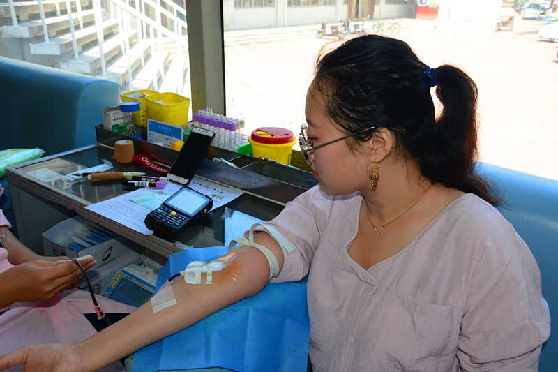 同学参与献血中