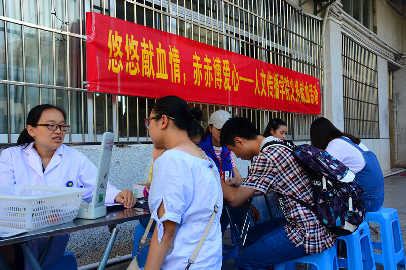 在此次献血活动中同学们勇敢的伸出自己的手臂,献出自己的爱心,展现了他们无私奉献的优秀品质。用热血传递爱心,用爱心为生命加油,人文传播学院在今后也将继续支持义务献血活动,为献血事业作出贡献。