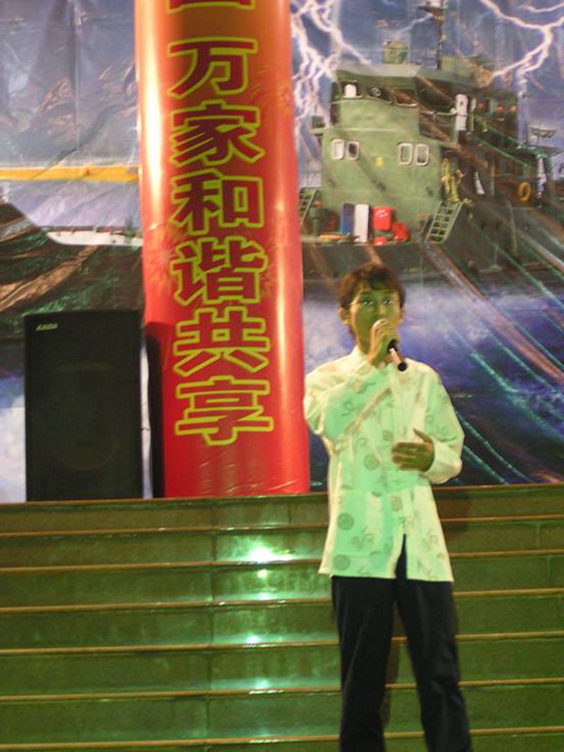 戏剧协会前会长赵德旭演唱一段现代版的京剧。他那清脆嘹亮的嗓音,抑扬顿挫的歌声让我们尽情陶醉在其中。海军武警大队的相声表演惹得台下观众笑得前仰后合。中国式的灰姑娘搞笑不断精彩连连。当然整个晚会的高潮部分是抽奖环节,我们帅气幽默的男主持使整个场面悬念不断,高潮迭起。