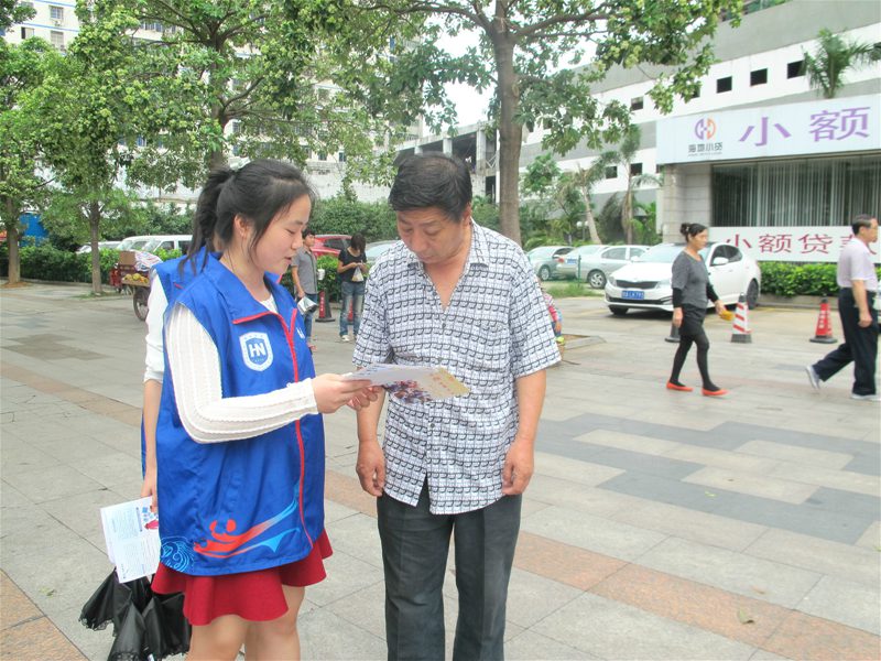 经过大约一个多小时的奔波和准备,终于在8:40左右于海口市的省妇幼保健院旁边的一个邮政局开始了我们的劝募活动。 大约在10:00左右,天空突然下起了大雨,可是我们的志愿者始终坚守在自己的岗位上。此时此刻,志愿者的形象得到了最好的诠释,也得到了最大的肯定——路人纷纷给我们的志愿者撑伞。