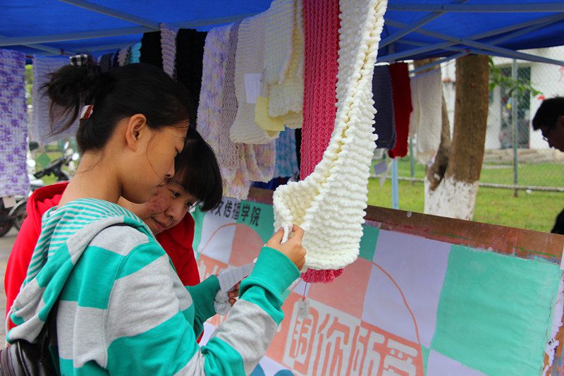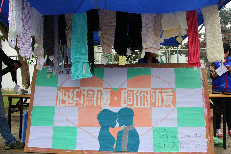 临近岁末,喜迎新年,人文传播学院团委社会实践部和青年志愿者协会于元旦前夕成功举办了“心织温暖,围你所爱”爱心织围巾志愿活动。此次织围巾活动分为两部分进行,教学部分在城西校区展开,而爱心围巾则在海甸校区展出并举行拍卖义卖。此次织围巾活动旨在凝聚爱心,传递爱心,化小爱为大爱;活动拍卖义卖善款将捐助给山区贫困小学生。 教学活动中城西校区各学院共154名志愿者参与活动。教学活动当日,主持人作简短开场后,教学活动正式开始,志愿者们热情高涨,积极学习织围巾所必需的起针、织针和收针三个步骤,活动取得了良好的效果。伴着电影《怦然心动》的播放,爱心织围巾活动在不知不觉中落下帷幕。 织围巾虽然结束了,但爱心活动却未停止。随着新年的来临,在海甸校区展示了志愿者们的成果并进行了志愿者所织围巾的拍卖义卖活动。拍卖会期间,现场温情与热闹并存,爱心洋溢。各位竞拍者竞争激烈,拍出了单条围巾77元的价格,达到了整场拍卖会的最高潮。在各位拍卖者和工作人员的积极努力下,勾起来往路人藏匿于内心的爱,活动不时有小高潮出现。与此同时,义卖现场在各位工作人员的积极介绍和引导下,路人不时驻足,义卖围巾共售出29条,得善款698元。 随着义卖活动也接近尾声,“心织温暖?围你所爱”活动圆满完成。活动虽结束,但我们也由衷地希望每个人献出自己的一份爱心,小爱汇聚大爱,给贫困山区的孩子一份温暖。