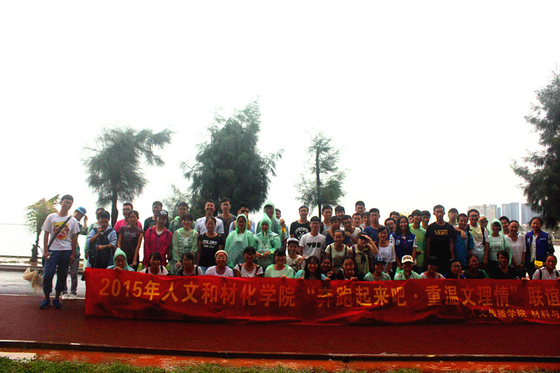 团委与材化学院团委之间的交流,探索更利于学院团委间的交流合作模式,两院团委全体学生干部于2015年5月17日在海口市万绿园开展“奔跑起来吧·重温文理情”素质拓展活动,活动参与人数合计80余名同学。
