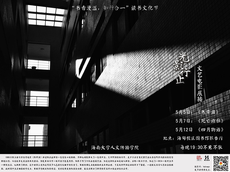 据了解,“书香漫溢.知行合一”读书文化节之“醉心书翰.光行影止”文艺电影展映活动已分别在海甸校区、城西校区成功举办四期,活动深受同学们的喜爱。作为本届读书文化节一项子活动,“醉心书翰.光行影止”文艺电影展映活动为本届读书文化节增色不少,观影让同学们从静态的阅读中认识世界,从动态的观影中感悟人生。文艺电影展映活动也得到了灵犀直播