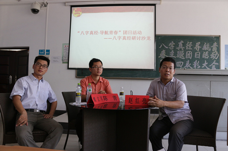 “八字真经,导航青春”主题团日活动在《你好,青年》中国青年自我宣传片的播映下温馨开场。围绕涌动的时代大潮和习近平总书记对青年人嘱托的八字真言,活动以研讨沙龙的形式与现场同学展开互动交流,活动中赵红亮老师、陈青老师、熊文军老师从自身经验出发,和同学们分享人生感悟,一一解读“勤学、修德、明辨、笃实”八字真经。陈青老师告诉同学们,“勤学”在学好文化课同时不能局限于课本,要拓宽视野;修德即德才兼备,以德为先;明辨,不要对社会上各类现象随意抨击,人云亦云;笃实就是做一切事情要踏实认真,知行合一。赵红亮老师则结合自身十多年投身公益实践的经历,向同学们更多的阐明了笃实的意义,赵老师引用海尔总裁张瑞敏的话“把每一件简单的事情做好,就是不简单;把每一件平凡的事情做好,就是不平凡”,勉励同学们要守正笃实,久久为功。 谈到“勤学、修德、明辨”,赵红亮老师还奉劝同学们时时刻刻不要忘记学习,获得学习能力比知识更重要;为人要明大德守公德严私德;在明辨是非上,不要犯历史虚无主义的错误。在研讨沙龙中,围绕“八字真言”延伸的主题,老师们还针对志愿服务、网络新媒体文化、社会实践等话题与在场同学展开了深入交流,各基层团支部书记也围绕班级活动与大家分享交流了学习八字真经的心得。在活动最后,熊文军老师主持作结,熊老师希望在场学生干部通过研讨沙龙的“解经”活动,都能够取得真经,成为“八字真经”践行者的榜样,助推学院共青团工作新发展。