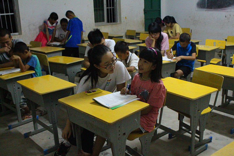 志愿者们晚上帮助学生辅导作业