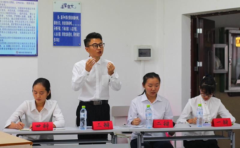 城西校区6C01教室如期举行。外联部副部长王媛媛同学担任本场决赛主席,人文传播学院仲冬梅老师、鞠斐老师、王森森老师担任评委。出席本次活动的嘉宾有人文传播学院学工办熊文军老师、人文传播学院学生会副主席张荻、唐瑭,旅游学院辩论队代表曾屿恬以及各兄弟学院学习部部长。本次辩论赛由人文传播学院团委学生会学习部主办,2015级中文辩论队和汉教辩论队进行本次的冠军争夺战。