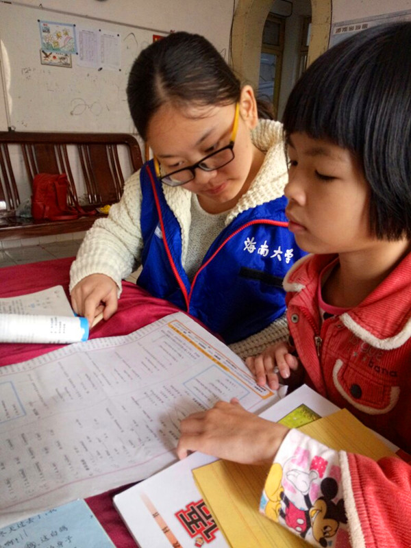 志愿者为孩子讲解习题