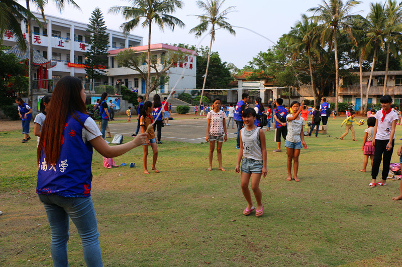 4月12日下午,由人文传播学院联合共青团海口市委员会、共青团龙华区委员会、海口市龙华区新联小学开展的“七彩课堂·七彩梦想”——“阳光护航”重点青少年帮教志愿服务活动在海口市龙华区龙泉镇新联小学启动。共青团龙华区委书记刘尉一丹、龙华区新联小学校长韦长炳,人文传播学院团委熊文军老师及人文传播学院20名大学生志愿者、龙华区新联小学全体师生共同参与活动启动仪式。