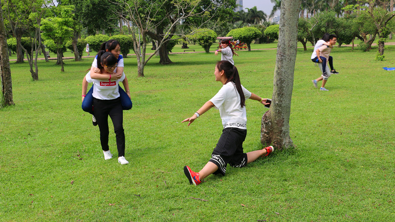 素质拓展活动分多个环节进行,在“瞎子背瘸子”素质拓展活动环节,队员们需要互相配合,绕过障碍,到达终点。这就考验队员们的体力、沟通协调以及安排分配任务的能力,同时也给平时缺乏锻炼的同学一个增强体质的机会。比赛的过程中充满了欢声笑语,无形之中拉近了两院团委学生干部之间的关系并增强了同学们的身体素质。上午的活动结束之后,大家一起在草地上吃午餐,两院团委学生干部愉快聊天,无论是工作或是学习都有所涉及,在不断地互动之中,彼此有了更加深入的了解。
