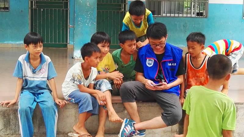 志愿者与孩子们在一起