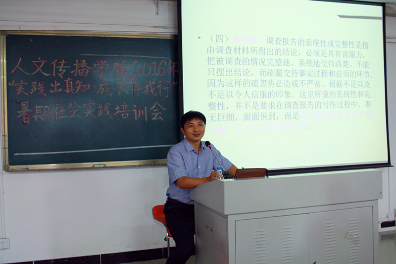 学子的暑期社会实践活动进行指导,对社会实践的选题、立项等方面均有丰富的经验和独到的见解。他首先让同学们了解了社会实践调查报告的重要性,然后围绕暑期社会实践的选题和社会实践报告的写法两方面进行了深入的讲解。高智老师认为,选题对于社会实践调查报告而言至关重要,是暑期社会实践最重要的方面。为了避免同学们走入误区,他对暑期社会实践的选题提出了清晰完整、以小见大、新鲜,和具有研究价值四个方面的要求。接下来,高智老师介绍了调查报告的结构与写法。他指出“好文章是改出来的”,并特别强调了调查报告写作应注意的细节。会上,同学们踊跃发言,将自己对于暑期社会实践的疑惑一一提出,高智老师进行了详细的解答。在讲解的最后,高智老师鼓励同学们沉下心来做研究,过一个有意义的暑假。最后,熊文军老师再次强调了选题的重要性,并鼓励同学们发挥自己的专业优势,进行跨专业、跨学院合作,同时也向高智老师表示了感谢。