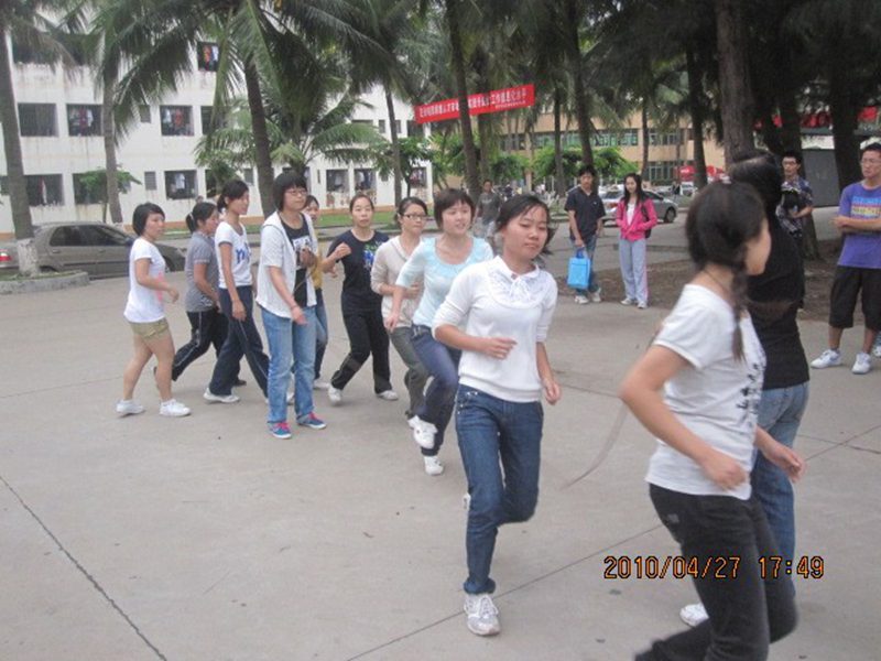 女生发挥传统优势,10名选手同心协力,以507下的好成绩轻松夺冠。2008级对外汉语专业的雷凤丽、贾超男同学在女子单人跳绳的比赛中获得第三名和第五名的好成绩。