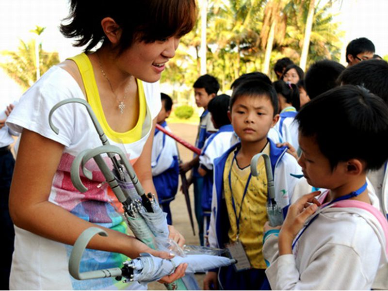 人文传播学院为文昌市爱心学校捐赠仪式”于学校图书馆前的广场上准时举行,来自小学和初中不同年级的百余个孩子同老师聚集到广场上参加仪式。我们根据孩子们的实际需求为孩子们带来两个玻璃钢篮球板和70把爱心伞,这些捐赠品的购置资金均来自于灵犀直播