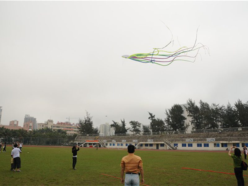 4月9日早上9:00,第一田径场上人潮涌动。由人文传播学院主办的一年一度的风筝文化节在热烈而欢乐的气氛中拉开帷幕。此次风筝文化节邀请到学院党委孙晓媛副书记、学院团委谢庚全书记、学工办公衍峰老师以及各学院学生会主席,以及海南省风筝协会胡宝林会长等嘉宾。孙晓媛副书记为此次风筝文化节致开幕辞,并隆重宣布风筝文化节开幕。 本次风筝文化节共分为三个部分:“我的空中楼阁”主题征文、DIY风筝设计和风筝放飞比赛。征文比赛在此次风筝文化节开幕前即已完成征稿、统稿等工作,由院刊《问渡》编辑部进行了评选,比赛结果在随后的颁奖仪式中进行揭晓。DIY风筝设计分为普通组和低碳组,普通组的比赛中,同学们充分发挥自己的想象力,用手中的画笔在风筝模板上勾勒出一幅幅美丽的图画,绘画精美,五彩缤纷;而在低碳组比赛中,同学们则用自己灵巧的双手将一件件废旧的材料组合成一只只精美而富有环保理念的风筝,构思巧妙,设计精巧,充分体现了海大学子无穷的想象力与创新能力。比赛结束后,在场的同学踊跃投票,积极选出他们心目中最理想的风筝。 在激动人心的放飞比赛中,选手们在风筝放飞高度和平稳度上展开了角逐,在激烈竞争的同时,也把欢快的笑声洒满了整个运动场。同时,风筝协会的成员们也分别放起了各种图样的巨型风筝,风筝上挂着“龙腾华夏九十年 风舞神舟千万载——贺建党九十周年”、“墨香海韵方显书生意气,创先争优尽显人文风华”的竖幅高高翱翔于天空,赢得在场选手及观众的声声赞叹。 在放飞比赛结束后,进行了隆重的颁奖仪式,灵犀直播