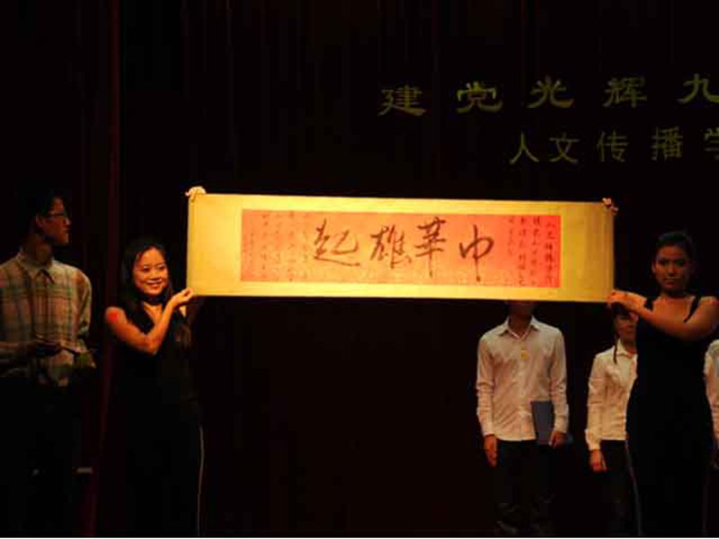 各年级专业同学朗诵的《我爱你中国》、《革命的回响》、《中国年轮》、《大堰河,我的保姆》、《光的赞歌》等精彩诗篇也赢得了观众的阵阵掌声。诗句歌咏祖国,诗声传递热情!很多代表队还在朗诵的基础上加入了歌唱、舞蹈、书法等富有创意的艺术表现形式,一首首诗歌被他们演绎的形象动人。而由人文传播学院文工团带来的歌曲《爱我中华》、舞蹈《心若在》也点燃了全场的气氛,场下掌声雷动,观众们热血沸腾,他们被台上声情并茂的朗诵和精彩绝伦的表演深深地感动着。 经过评委老师们的认真评判,最终名次确定:08广告获得一等奖,09对外汉语、10广告获得了二等奖,09广告、10戏影、08中文获得了三等奖。本次大赛还评出优秀奖、最佳创意奖、最佳舞台风尚奖若干。 诗歌朗诵比赛在一片热烈的掌声中圆满落幕。通过本次大赛,同学们不仅表现出了高超的朗诵水平,更重要的是抒发了自己爱国爱党的热情。让我们以诗歌向亲爱党和祖国献礼,愿伟大的祖国在我们这一代的努力下会更加繁荣! 人文传播学院通讯部:侯晓宁