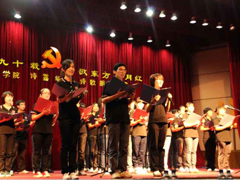 为了热烈庆祝中国共产党成立九十周年,弘扬红色革命精神,传诵红色革命经典,人文传播学院团委学生会于5月15日晚上7:00在学校原行政楼二楼报告厅举行“建党光辉九十载,踏歌东方五月红”诗露华语诗歌朗诵比赛。本次比赛邀请到人文传播学院党委副书记孙晓媛老师、中文系刘显老师、中文系张硕果老师、戏剧影视文学系鞠斐老师、戏剧影视文学系李骞老师担任评委,学院团委书记谢庚全老师、学工办公衍峰老师、学工办王森森老师、农学院学工办王远露老师作为嘉宾出席活动。 比赛开始前,一首灵犀直播