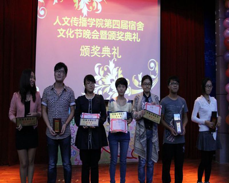 经过激烈角逐,最终5栋525宿舍脱颖而出,获得“五星级宿舍”称号,王森森老师为他们颁发获奖证书。最后宿舍文化节晚会在歌曲合唱《相亲相爱》中圆满落下帷幕。此次活动增进了宿舍成员之间的默契和友谊,活跃了宿舍文化生活,让同学们在活动中感受到宿舍大家庭的温暖和快乐,彰显了学院人文精神。 人文传播学院通讯部:刘思妙