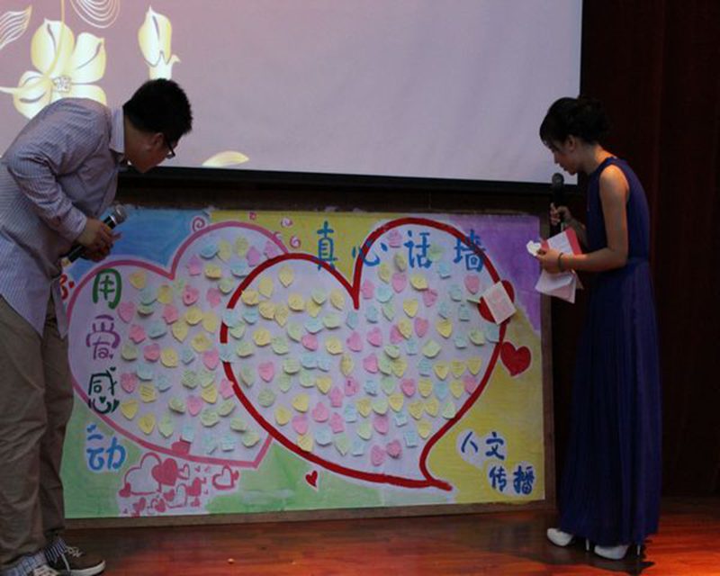 晚会伊始,温馨的宿舍文化节宣传短片和一曲激情四溢的开场舞博得阵阵掌声,拉开晚会帷幕。本次晚会共挑选出8个优秀宿舍参赛,通过宿舍PPT展示和宿舍才艺展示两个环节展示各自宿舍的文化和风采。参赛宿舍们八仙过海各显神通,或宿舍情景剧表现宿舍生活的温馨友爱,说出且行且珍惜的共同心声或共歌一曲诉说宿舍魅力或激情舞蹈张扬青春自我。更有武术和小魔术的表演让全场气氛异常热烈。激烈的比赛中还穿插有轻松的游戏互动环节,宿舍默契大考验增强宿舍成员之间的感情,将晚会再次推向高潮。晚会现场还展示了真心话墙,主持人选读同学们对宿舍的祝福。