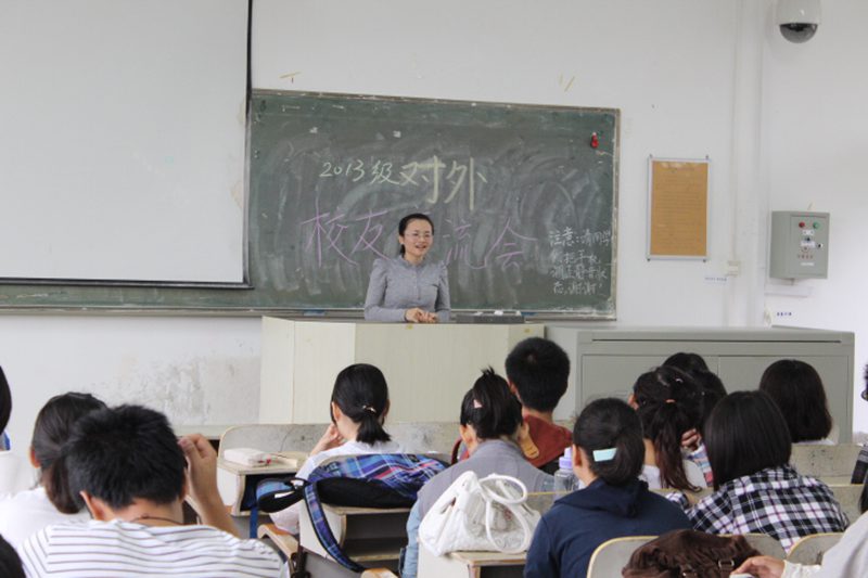 11月10号上午9:30,由人文传播学院举办的2013级新生职业指导活动月之汉语言国际教育专业校友交流会301正式举行。活动邀请了灵犀直播