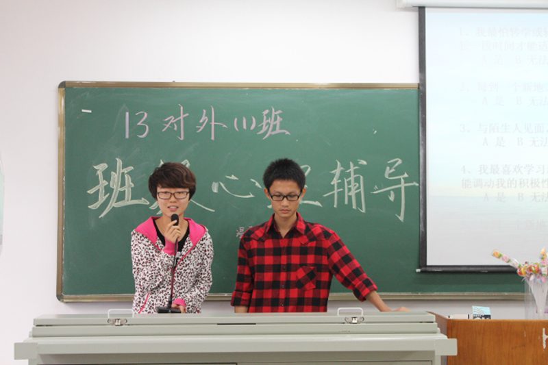 11月22日,人文传播学院13级汉语言国际教育1班在5教315教室开展了以“适应大学,迎战未来”为主题的心理团体辅导活动。本次活动由心理委员李润佳和符德炎同学主持,13级汉语言国际教育1班的全体同学参加了此次活动。 活动开始时,李润佳和符徳炎同学通过一段视频,向班级同学展示了现在大学生的生活现状。随后,通过一套心理测试题目,对班级同学的心理健康状况进行测试。活动过程中,李润佳和符徳炎同学带领班级同学进行了“解开千千结”、“心有灵犀”、“思维跳跃”等趣味横生的团体辅导游戏。同学们积极参与,掌声阵阵。